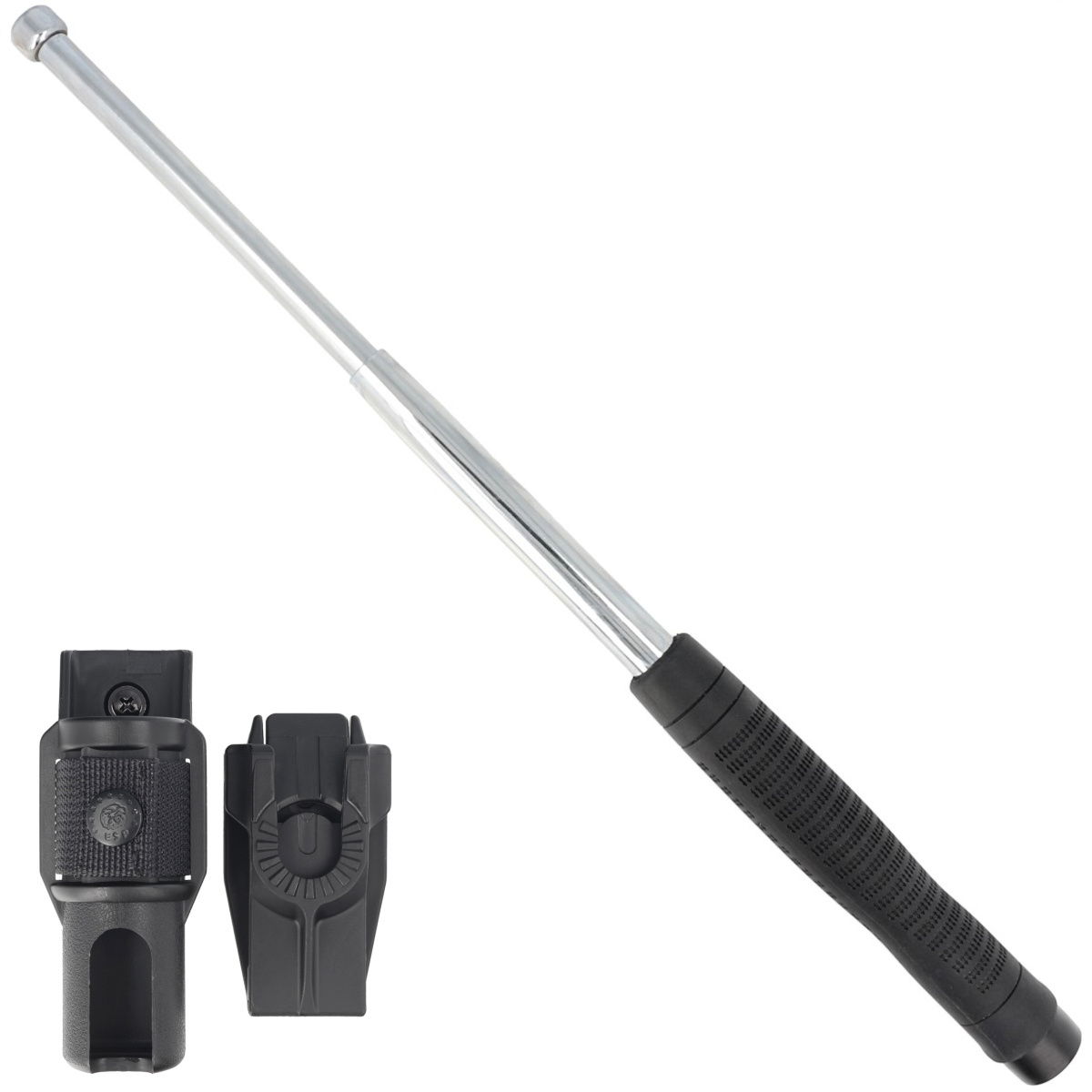 EXB-18HE CHR BH-54, Ergonomic hartowana 18" pałka teleskopowa ESP Friction Loc. W zestawie profesjonalny wypinany obrotowy uchwyt BH-54 z mocowaniem UBC-5 (Quick Change System). Dla ceniących skuteczny zasięg, kompaktowy rozmiar, skryte przenoszenie...