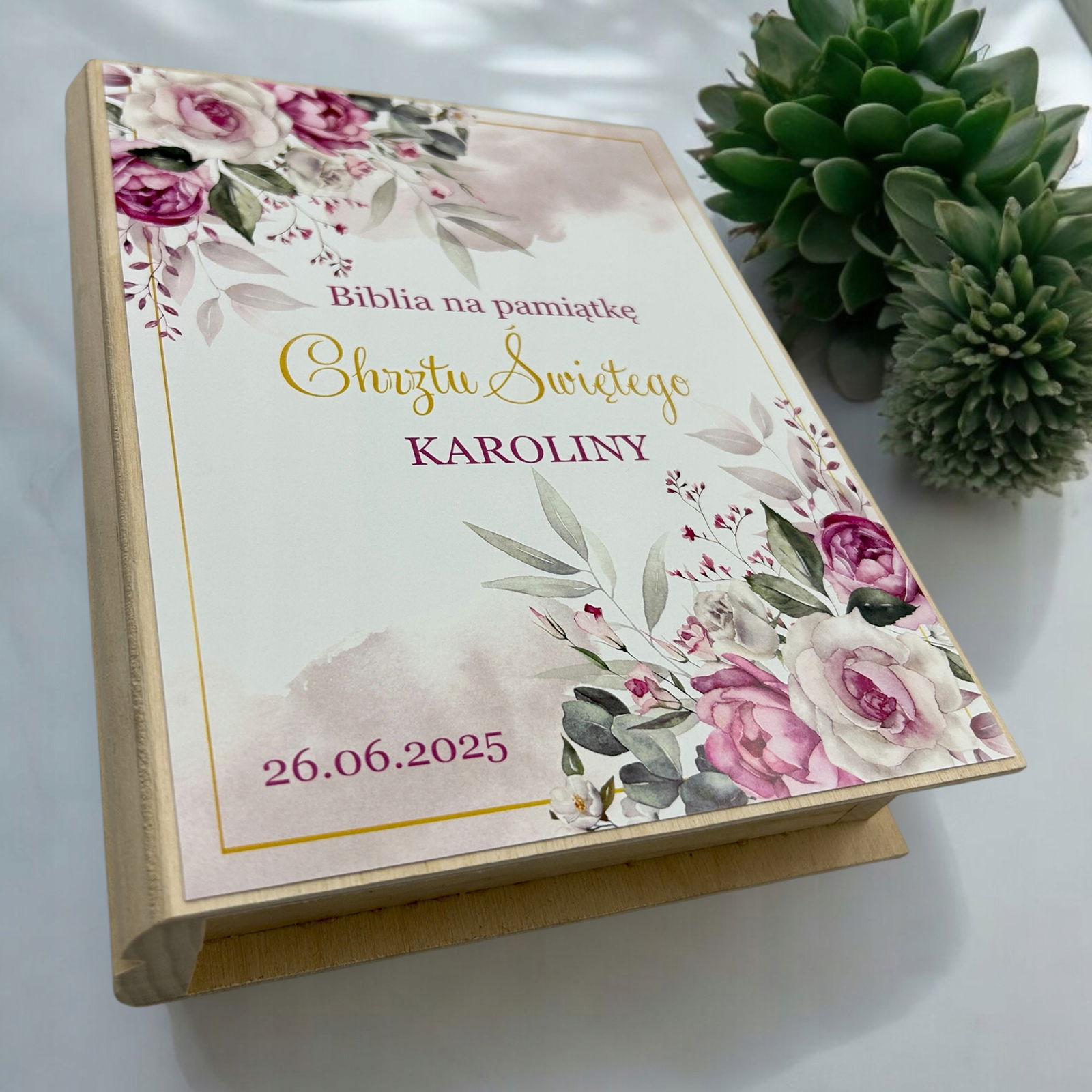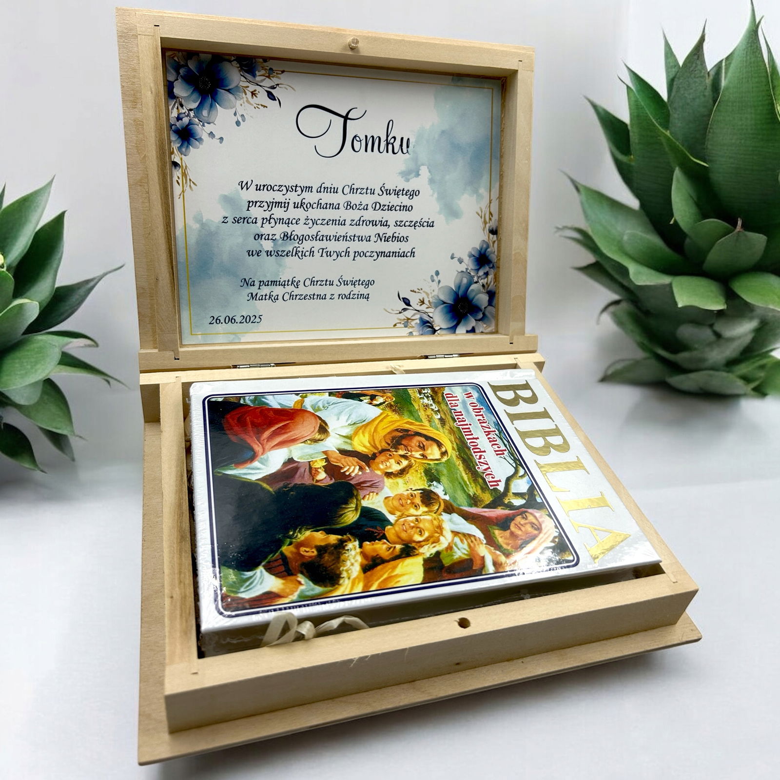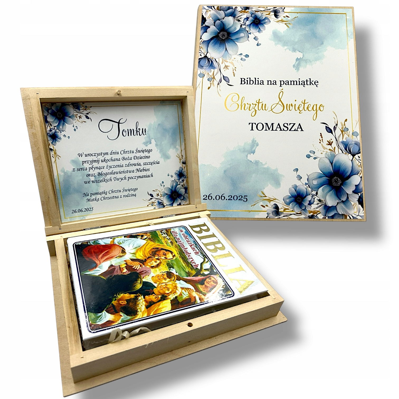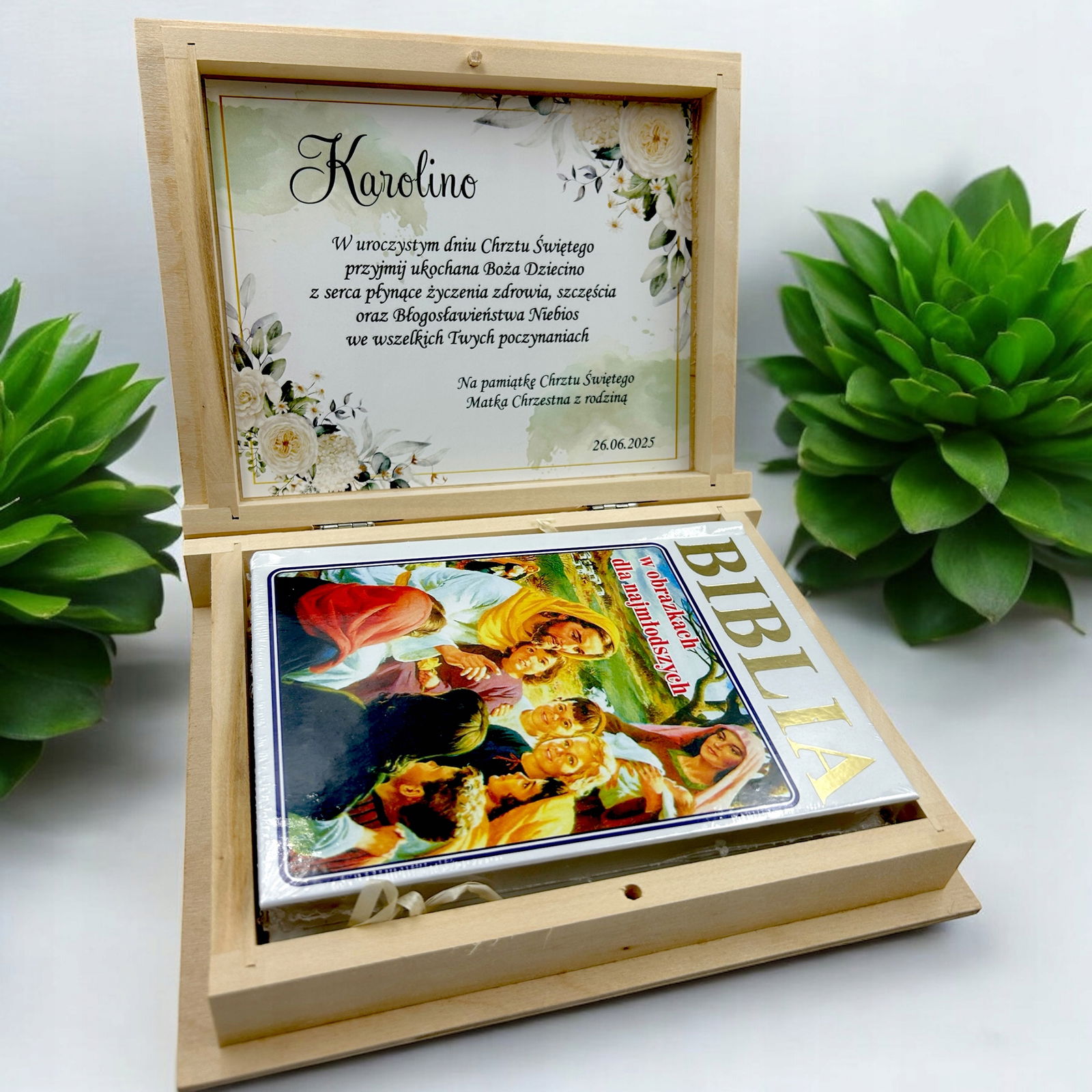 Pamiątka Chrztu Świętego Biblia prezent Chrzest Święty Pudełko Grawer RU2