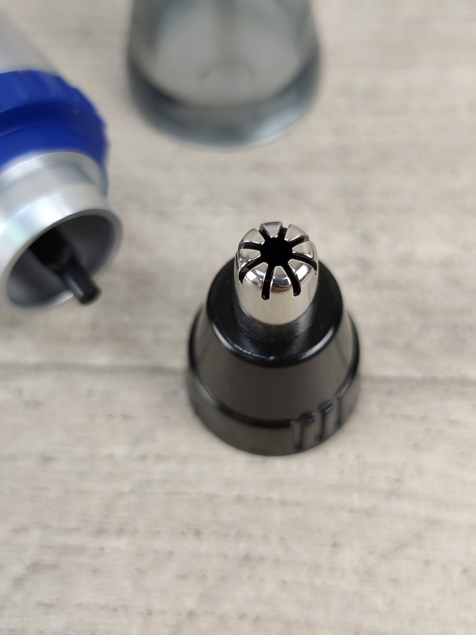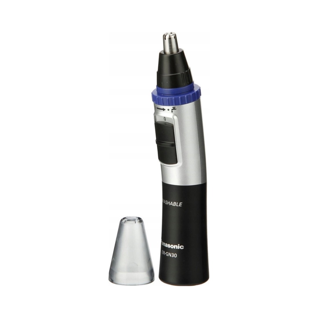 👃 Panasonic ER‑GN30K to lekki, precyzyjny i wygodny trymer do nosa, uszu oraz detali twarzy. Wyposażony w podwójne ostrza dual‑edge ze stali nierdzewnej, przycina włoski szybko i bez szarpania, pozostawiając odpowiednią ilość dla naturalnej filtracji powietrza. Możesz używać go na sucho i na mokro, również pod prysznicem, a unikalny system czyszczenia automatycznie wypłukuje wnętrze głowicy pod bieżącą wodą — bez jej zdejmowania.