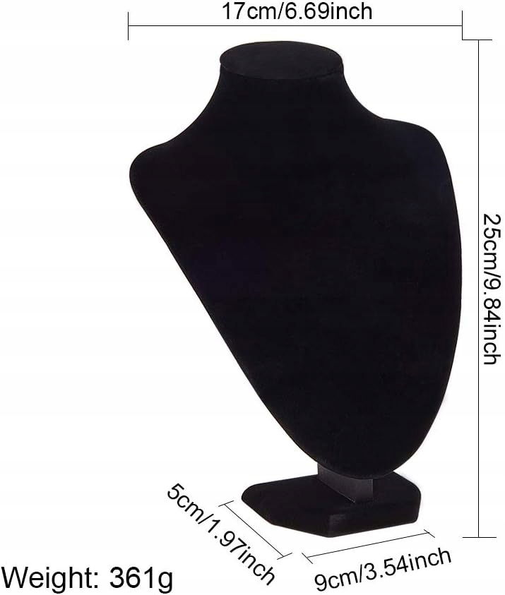 Mały rozmiar: Uchwyt na naszyjnik ma około 2,7 cala (7,5 cm) szerokości, 10 cm długości, 6 cali (15 cm) wysokości, z solidną podstawą, aby zapewnić Twojej biżuterii dobrze wyważone zaopatrzenie. Ten rozmiar jest stosunkowo mały. Przed zakupem należy dokładnie sprawdzić rozmiar.
