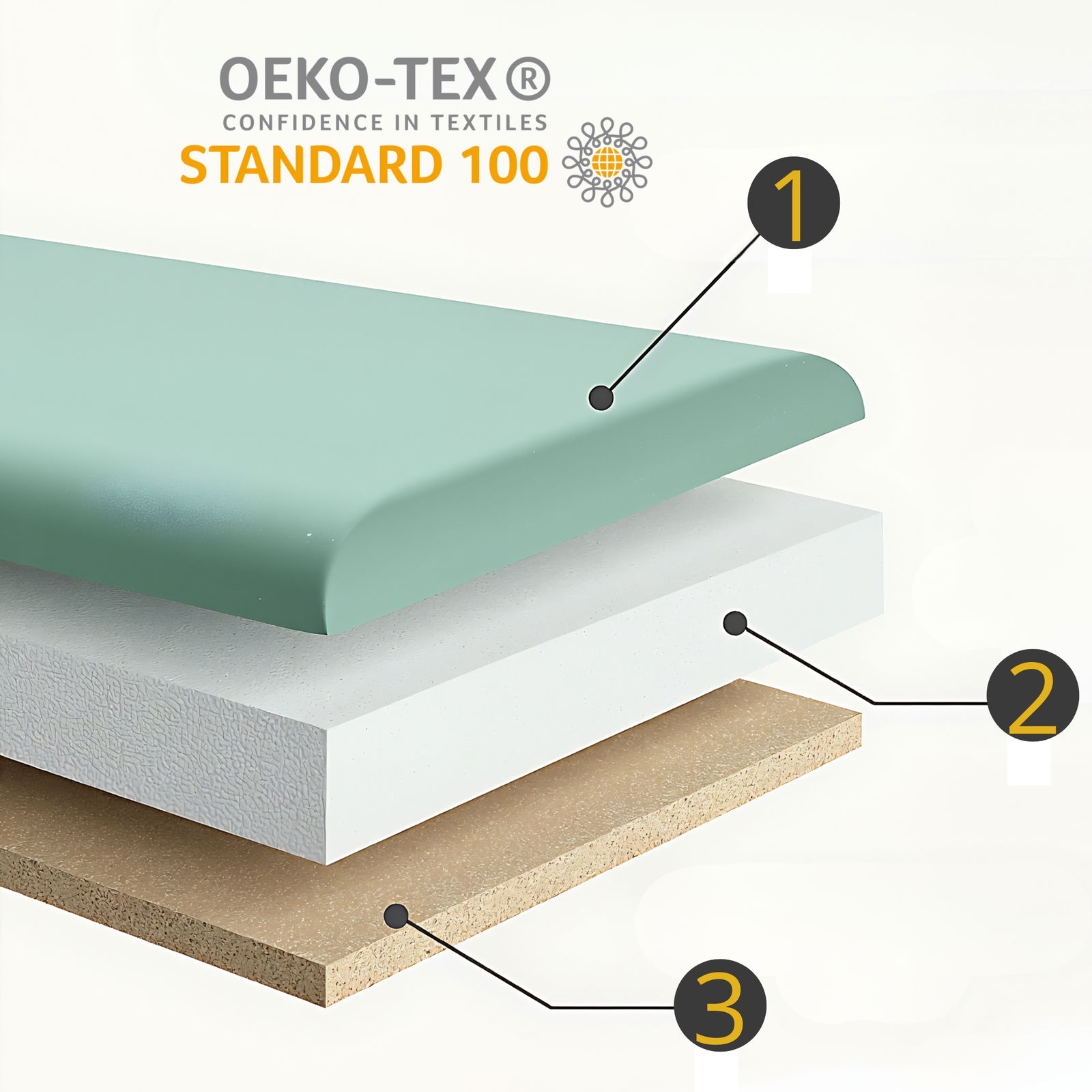 - Certyfikat OEKO-TEX®: Potwierdzający wysoką jakość tkaniny oraz gwarantujący brak substancji szkodliwych dla zdrowia