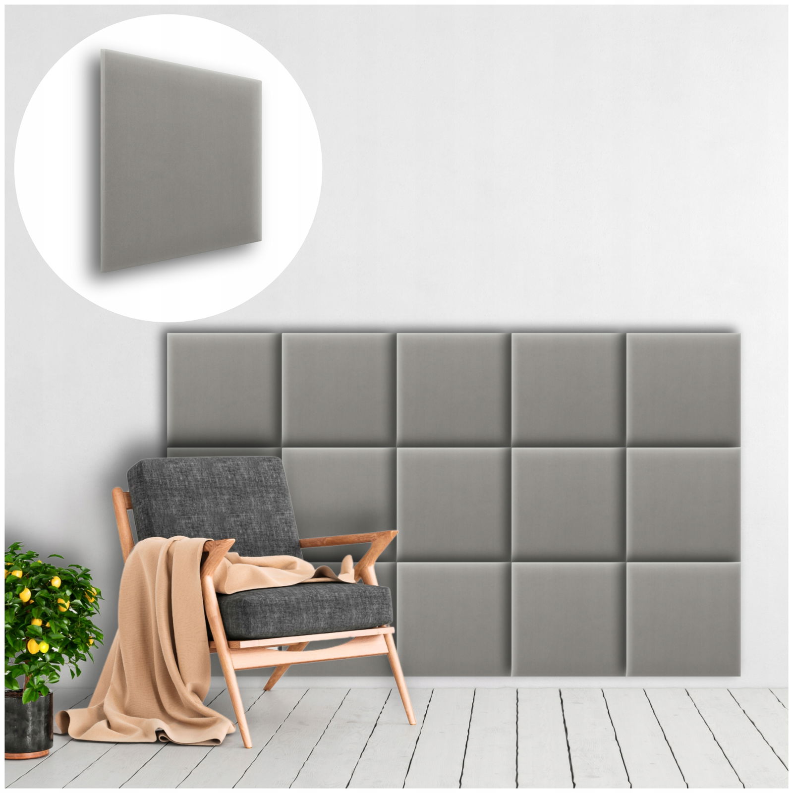 PANELE ŚCIENNE TAPICEROWANE MAGIC VELVET KWADRAT SZARY 50X50 CM