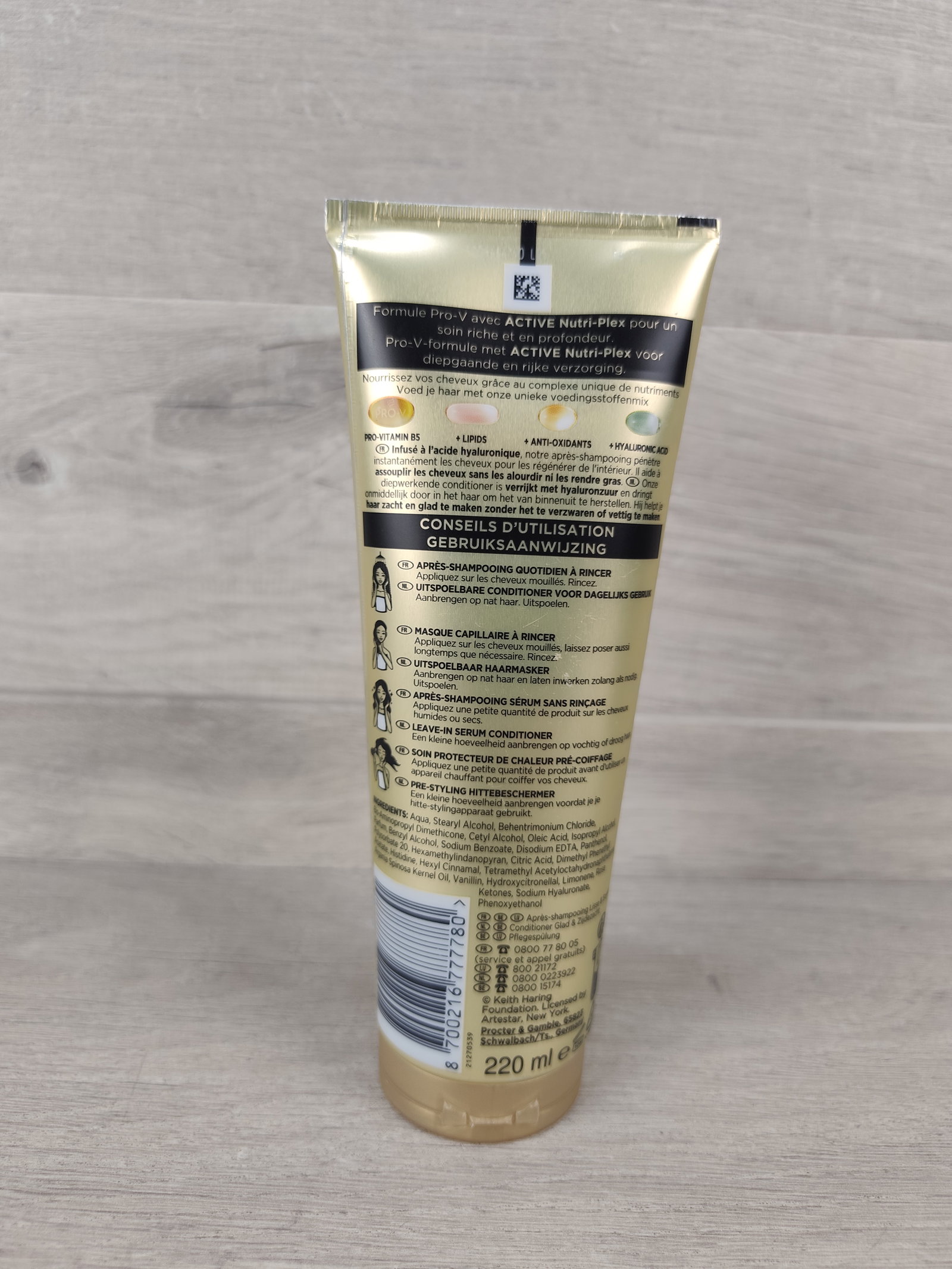 Formuła łączy kompleks Pro‑V z kwasem hialuronowym, który pomaga nawilżyć włosy, wygładzić ich strukturę i ograniczyć puszenie. Odżywka ułatwia rozczesywanie, dodaje blasku i sprawia, że włosy wyglądają zdrowiej i bardziej zadbane.