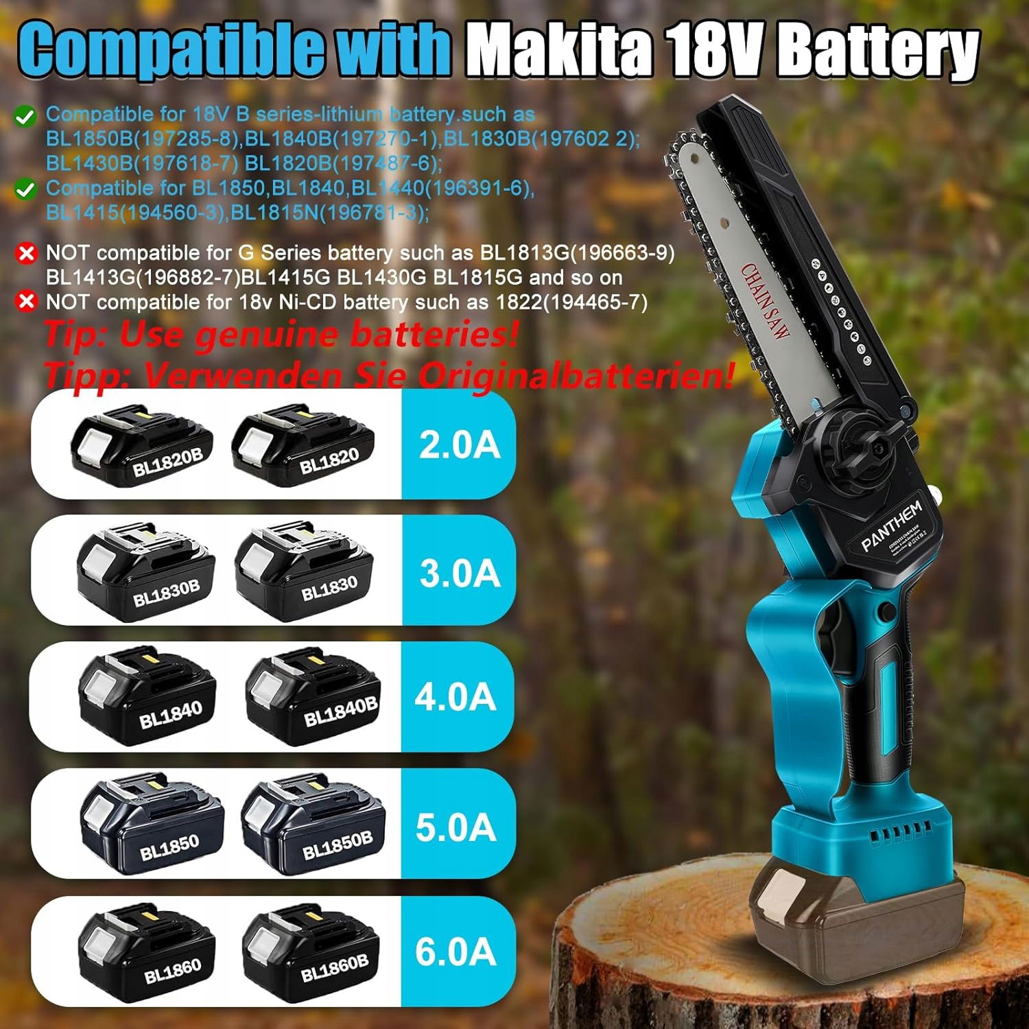 Panthem piła łańcuchowa z wysięgnikiem,kompatybilna z aku Mkita, bez AKU
