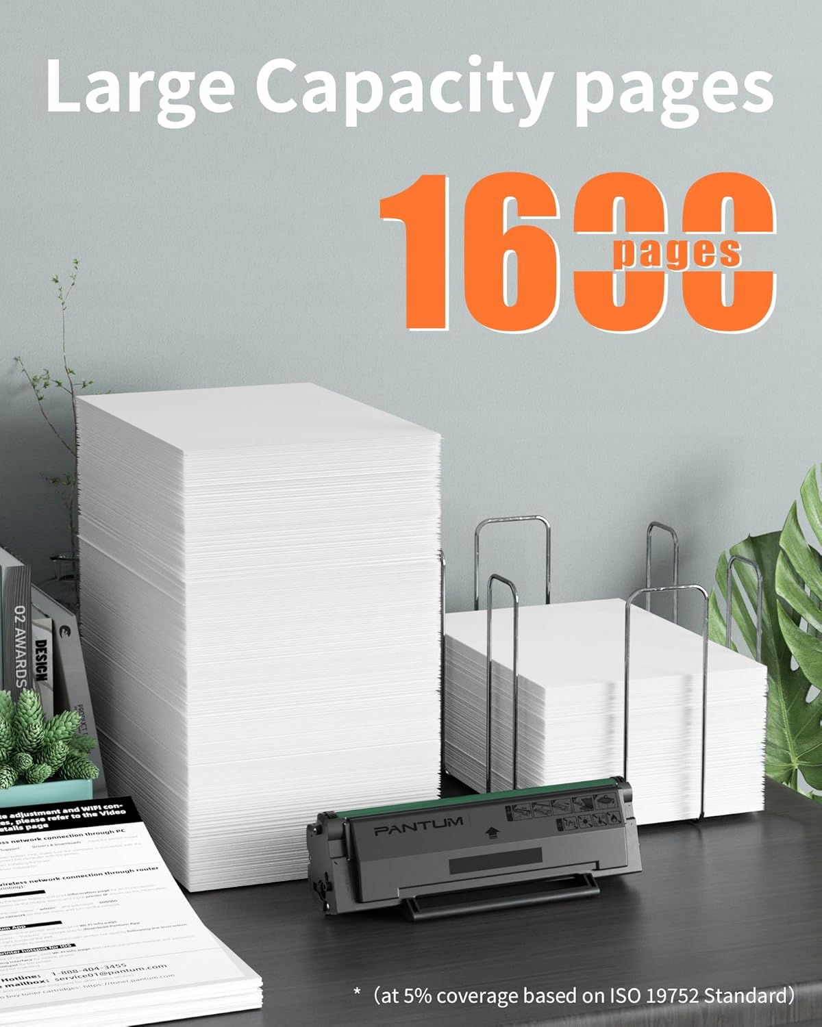 Toner umożliwia wydrukowanie do 1600 stron przy 5% pokryciu, zgodnie z normą ISO 19752, co zapewnia długotrwałe i ekonomiczne użytkowanie.