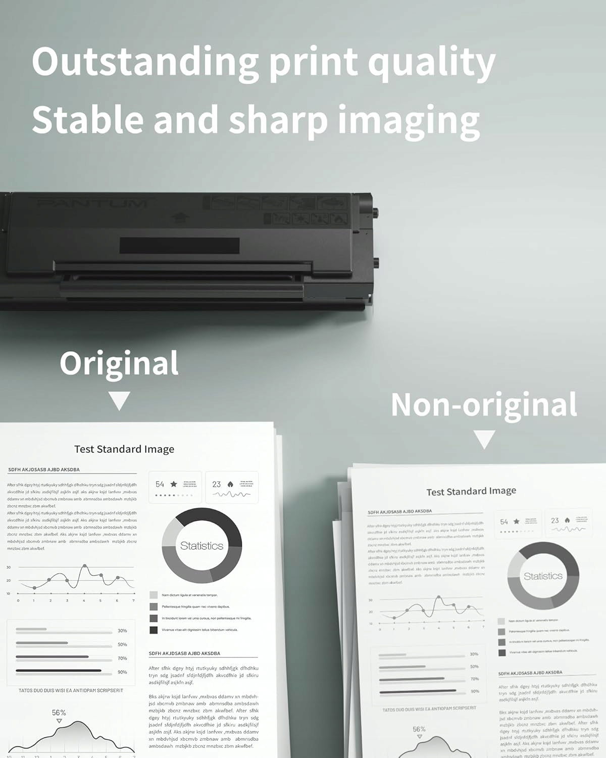 Zaawansowana technologia tonera w proszku zapewnia stabilny i wyraźny obraz. Dzięki stabilnej rolce magnetycznej, wysokiej jakości rolce ładującej (PCR) oraz precyzyjnemu szkłu obraz pozostaje ostry i wyraźny przez cały okres użytkowania.