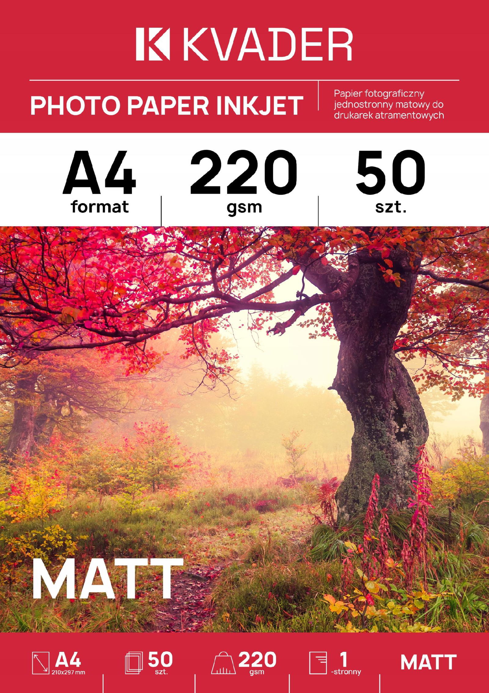 PAPIER FOTOGRAFICZNY DO ZDJĘĆ A4 MATOWY 220g 50szt do drukarki atramentowej