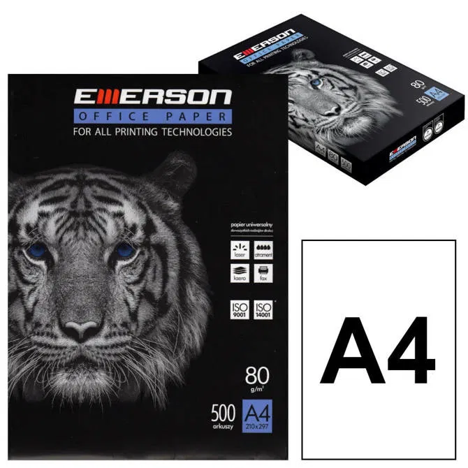 Uniwersalny papier TIGER do drukarek i kopiarek firmy Emerson do codziennego użytku. Idealnie nadaje się do codziennego użytku i do szerokiego zakresu zastosowań w biurze i w domu. Wysokiej jakości papier zapewnia płynne działanie w drukarce i zapewnia niezawodne rezultaty drukowania. Nadaje się do wszystkich drukarek – atramentowych, laserowych, kopiarek i faksów.