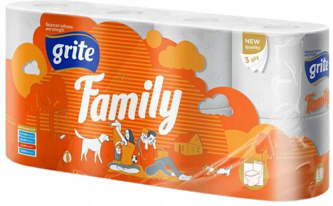 Rodzina / wystrój rodziny Bycie razem to szczęście Kiedy mieszkasz z rodziną, przeżywasz wszystko pięć razy więcej: radość, pyszne obiady z rodziną, wojny o jedzenie z dziećmi, przekąski przez telewizję siedząc na kanapie lub leżąc na dywanie ... Czy to nie tak? Dlatego przygotuj się na jeszcze jednego członka rodziny - linię Family. Miękki 2- lub 3-warstwowy papier toaletowy z recyklingu, ręczniki papierowe i serwetki staną się Twoimi codziennymi towarzyszami.