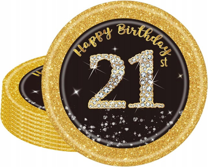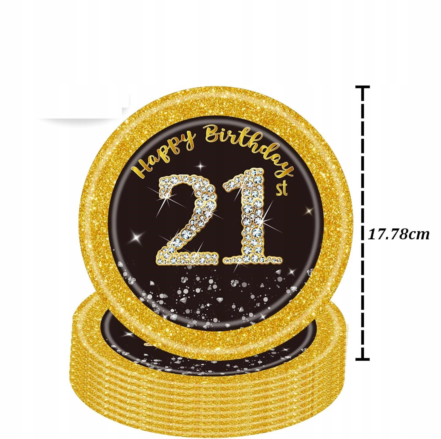 16 X TALERZYKI PAPIEROWE JEDNORAZOWE CZARNO ZŁOTE 21 URODZINY