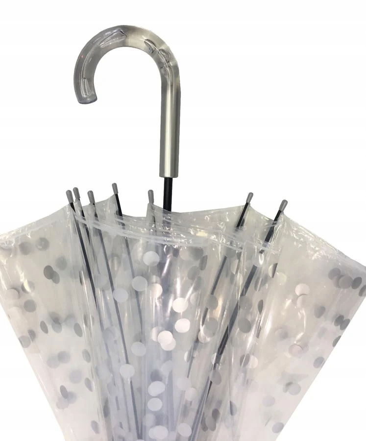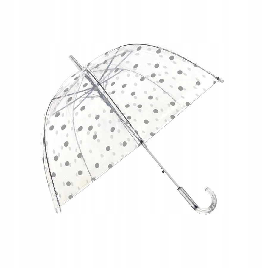 PARASOL AUTOMATYCZNY PRZEZROCZYSTY W KROPKI SMATI to elegancki i funkcjonalny dodatek do Twojej garderoby. Wyjątkowy parasol marki Smati został stworzony z myślą o Twoim komforcie i stylu. Jego przezroczyste płótno w srebrne kropeczki nie tylko idealnie ochrania przed deszczem i wiatrem, ale także dodaje nuty retro do Twojej stylizacji.