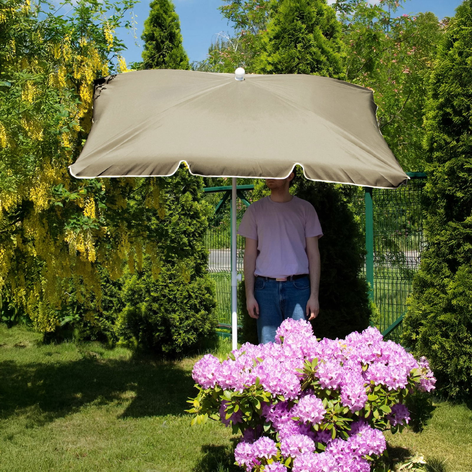 To doskonałe rozwiązanie dla osób szukających efektywnej ochrony przed słońcem na balkonie, w ogrodzie lub na plaży. Dzięki regulowanej konstrukcji, parasol można łatwo dostosować do różnych kątów, co zapewnia optymalną ochronę przed promieniami słonecznymi w ciągu dnia. Łamany design sprawia, że parasol jest łatwy do przechowywania i transportu, a jego składana konstrukcja pozwala zaoszczędzić miejsce, szczególnie w mniejszych przestrzeniach, jak balkon czy taras.