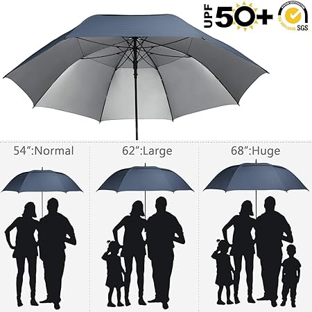 Duży parasol golfowy łuk 138 cm, średnica 114 cm jest wystarczająco duża, aby zapewnić ochronę 1 do 2 osób, idealny towarzysz podczas rodzinnych aktywności na świeżym powietrzu. W zestawie torba na parasol do łatwego przenoszenia i przechowywania.