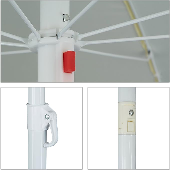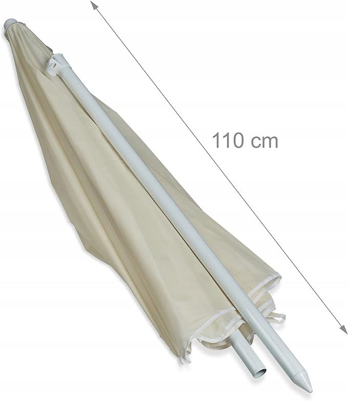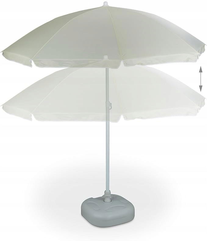 Z tym klasycznym parasolem możesz bez obaw cieszyć się słońcem w ogrodzie, na balkonie lub na plaży. Parasol wykonany jest z wytrzymałego poliestru i daje ochronę UV 40+. Dzięki temu, że parasol plażowy ma regulowaną wysokość i jest uchylny, można go łatwo dostosować do swoich potrzeb. Ze względu na system 2 masztów, parasol można szybko złożyć i rozłożyć lub schować.