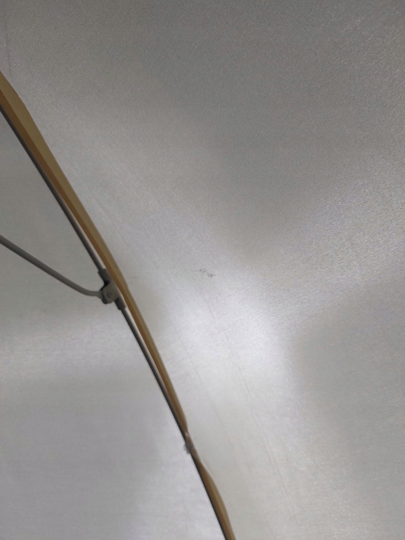 Posiada delikatne przetarcie i przybrudzenie materiału oraz wgniecenie na rurce, niewpływające na użytkowanie. (widoczne na zdjęciach poniżej).
