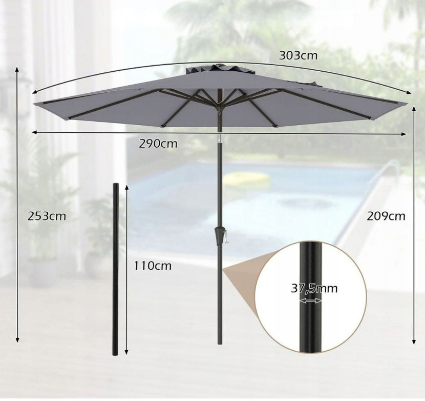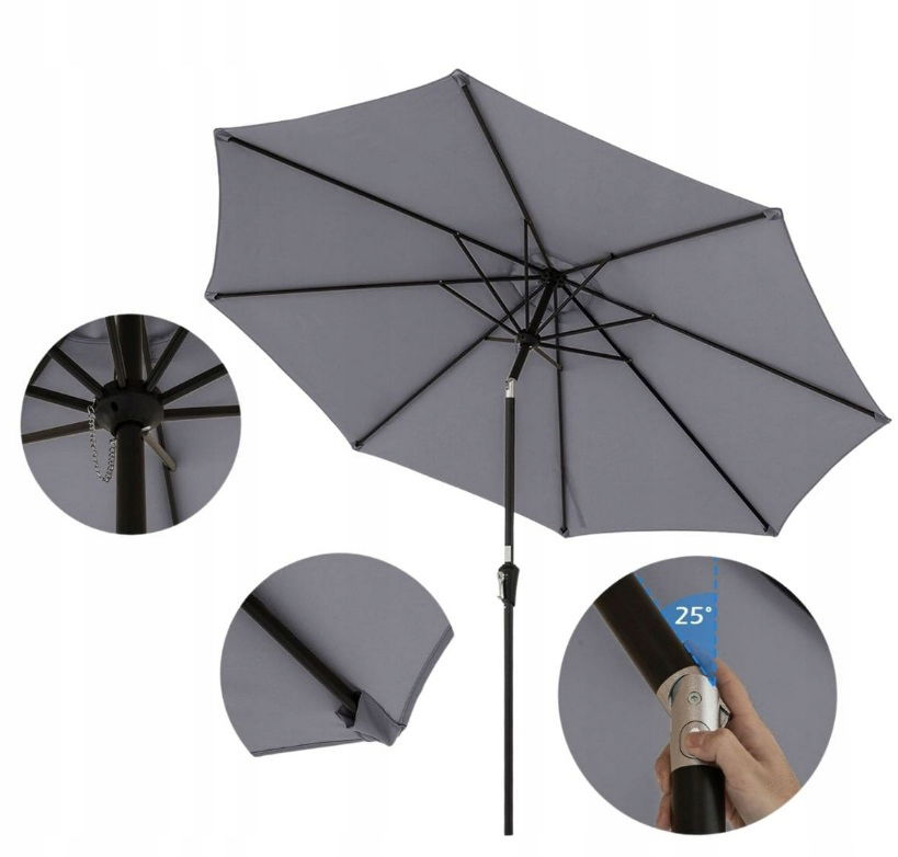 Szukasz eleganckiego, a zarazem funkcjonalnego parasola, który sprawdzi się zarówno w ogrodzie, jak i na tarasie czy balkonie? Ten stylowy szary parasol o średnicy 300 cm zapewni Ci idealny cień i skuteczną ochronę przed słońcem w każdej przestrzeni zewnętrznej.