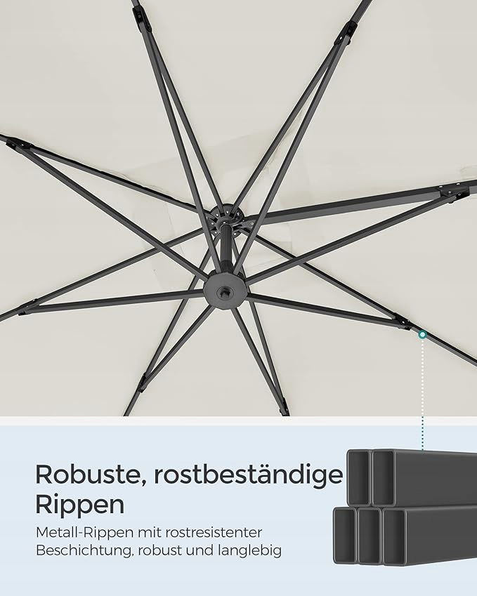 [Solidny i trwały] Ten parasol ogrodowy charakteryzuje się solidną i wytrzymałą konstrukcją, która jest wykonana z wysokiej jakości metalu z powłoką proszkową, jest odporny na rdzę i trwały