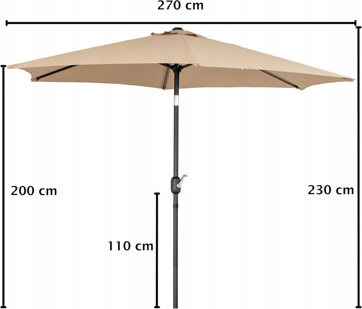 Średnica czaszy: 270 cm – idealny do ogrodu, tarasu lub przy basenie