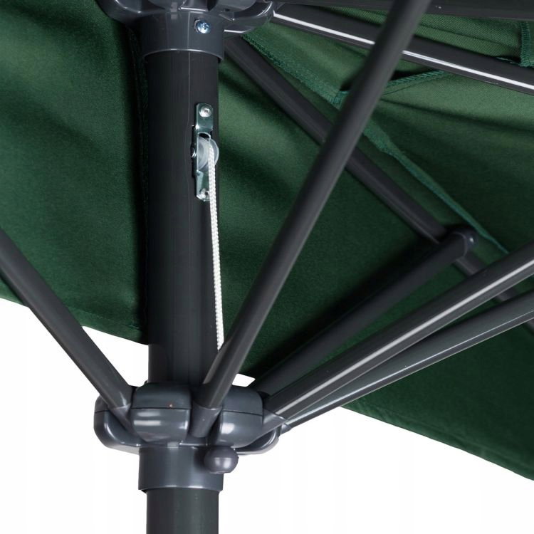 - Parasol wykonany jest z wytrzymałego, chroniącego przed deszczem i słońcem poliestru o gęstości 180g, o zielonej barwie, która dopasuję się do każdej przestrzeni.