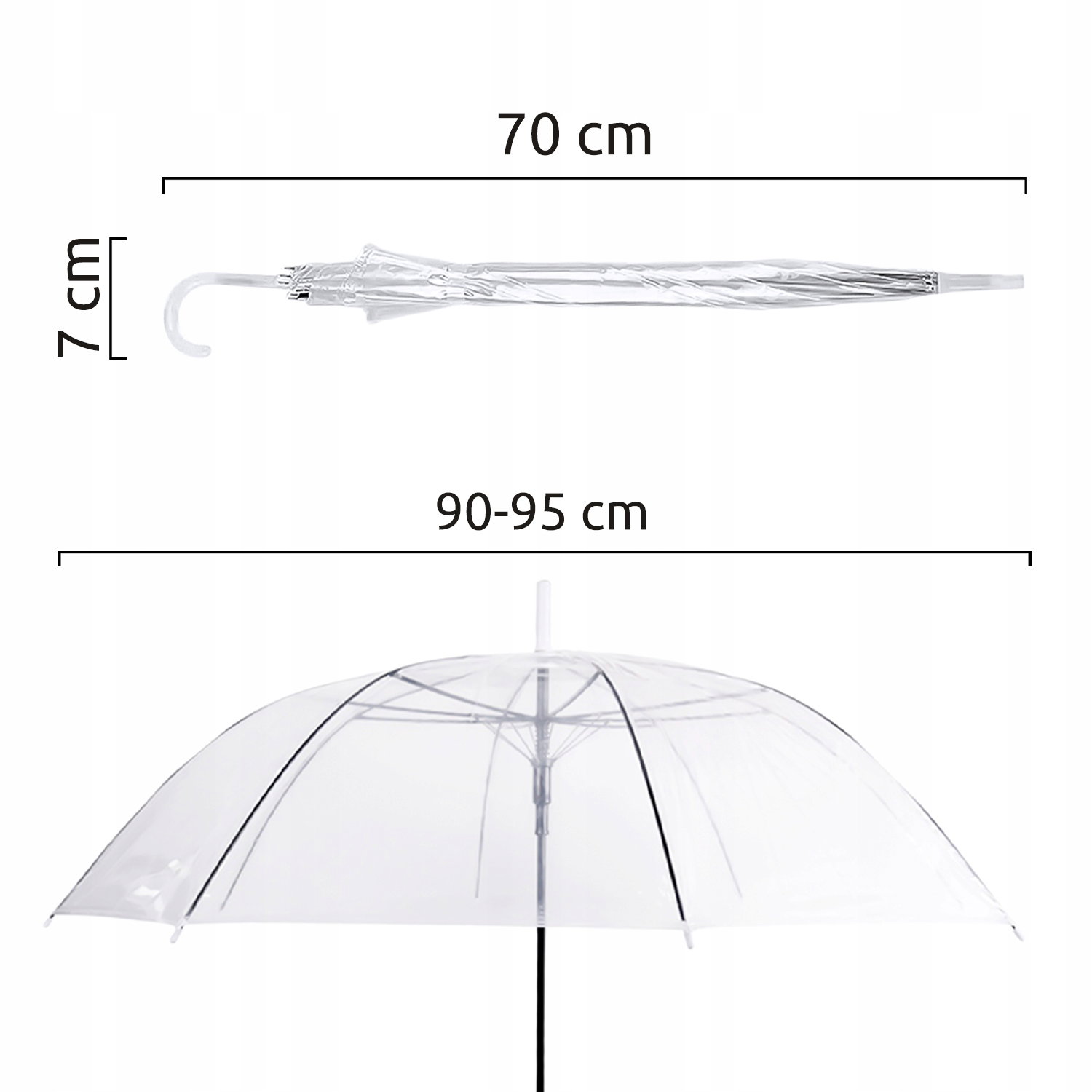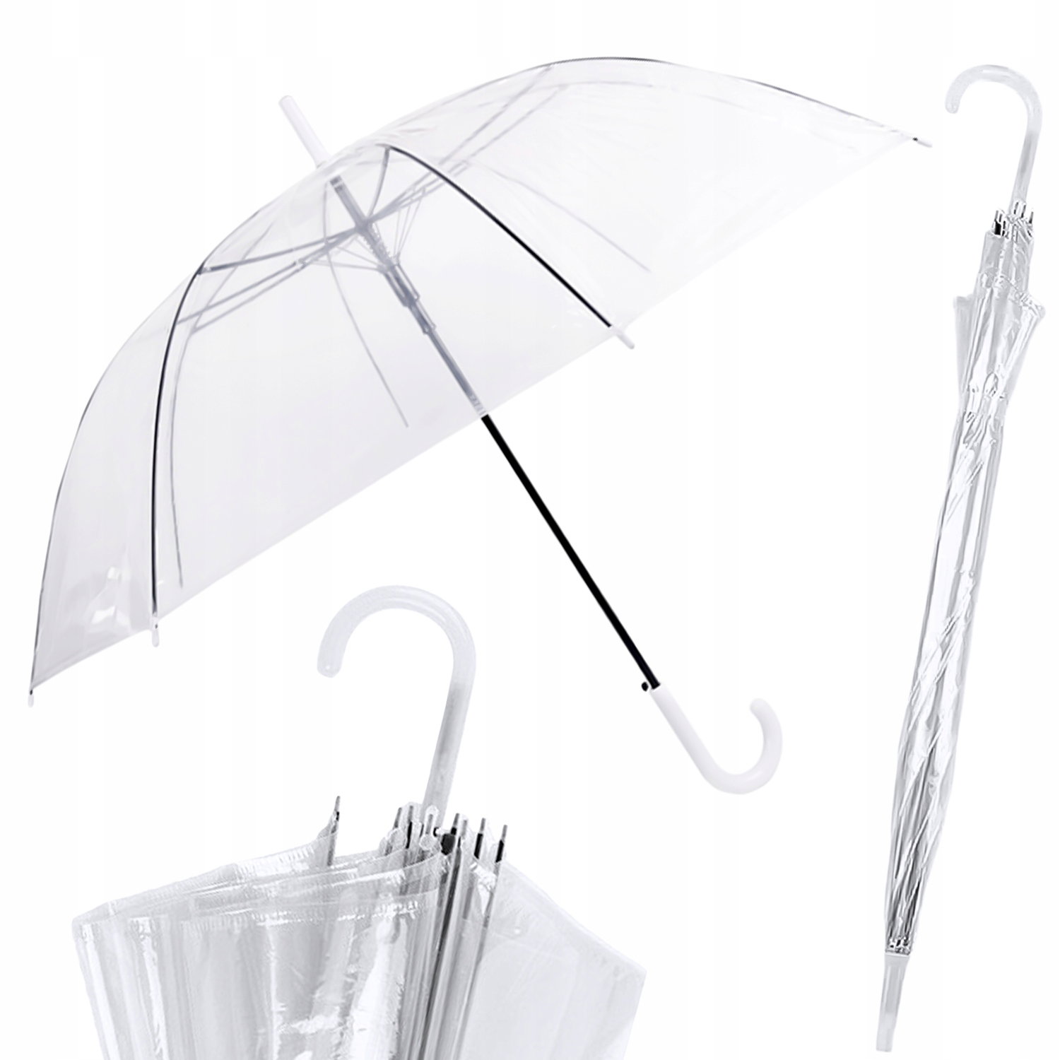 Przezroczysta parasolka sprawdzi się idealnie w wielu sytuacjach, oprócz chronienia przed deszczem podczas codziennych wyjść, jej uniwersalny styl będzie również pasował idealnie do sesji fotograficznych a także ochroni Cię w ważnym dniu ślubu jednocześnie nie odwracając uwagi ani nie zasłaniając pary młodej!