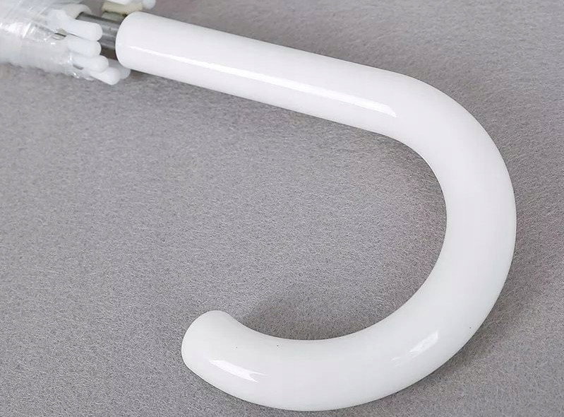 Transparentna parasolka wyposażona jest w elegancki, ergonomicznej budowy uchwyt ułatwiający użytkowanie i przenoszenie go. Kiedy przestanie padać wystarczy zaczepić go na nadgarstku i ruszyć dalej!