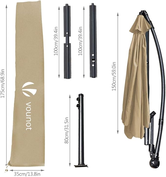 Parasol VOUNOT Shanghai można wygodnie otwierać i zamykać dzięki praktycznemu wahaczowi, ramię można wyciągnąć, aby zaoszczędzić miejsce. Parasol idealnie nadaje się do dużego balkonu, tarasu, ogrodu.