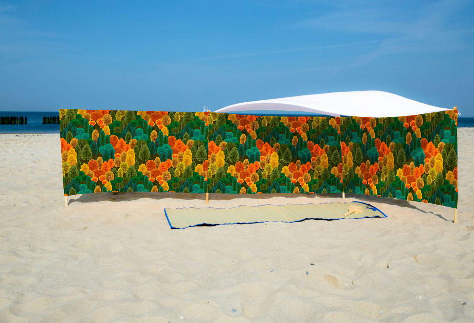 PARAWAN PLAŻOWY Jesienny las z indywidualnym napisem 5 PANELI 29.5