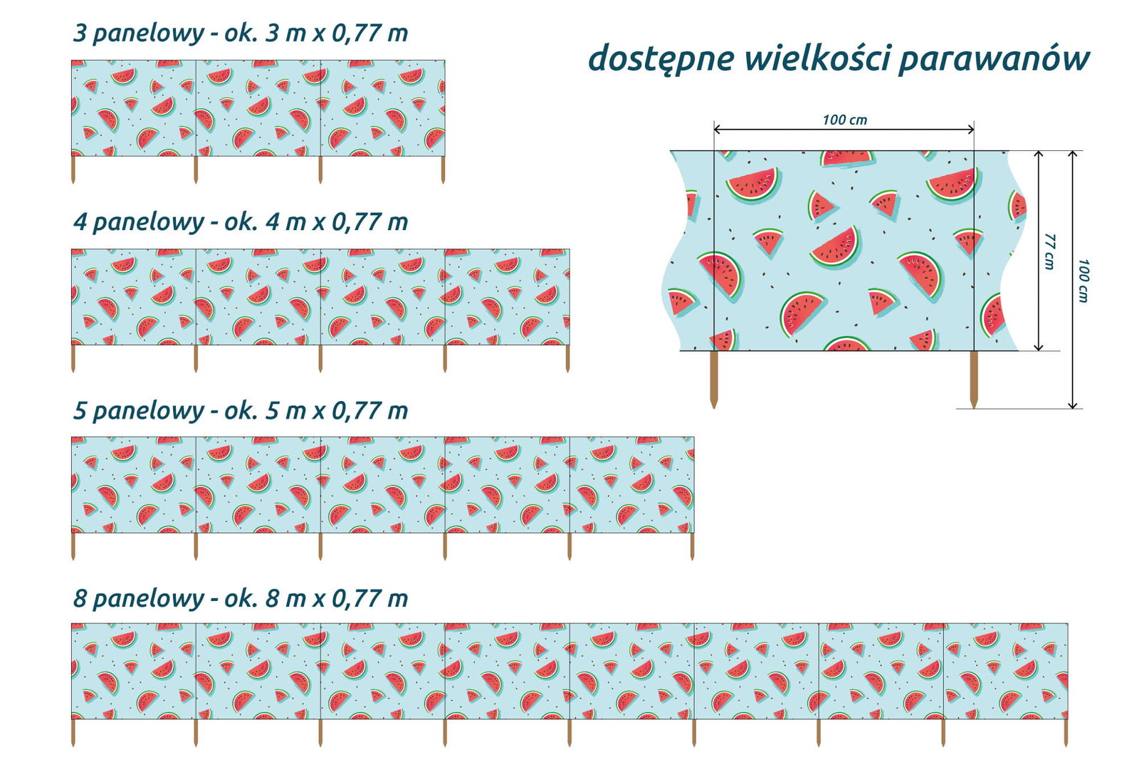 - Różne liczby paneli do wyboru: Możliwość wyboru parawanu z 3, 4, 5 lub 8 panelami.