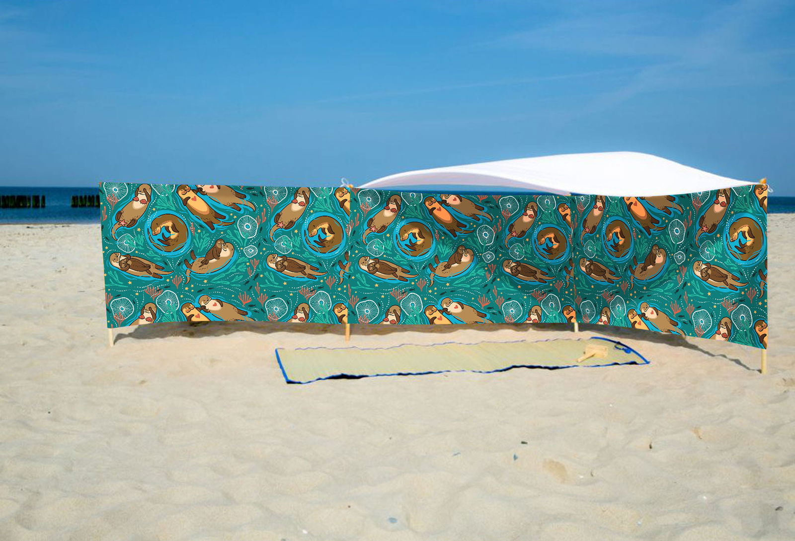 PARAWAN PLAŻOWY Wydry z indywidualnym napisem 8 PANELI 79.8