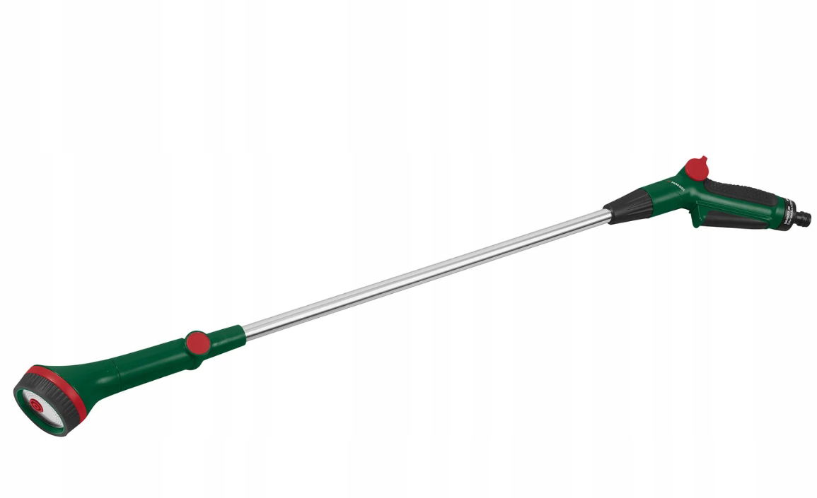 Regulowana głowica i dwa tryby pracy – silny pełny strumień lub delikatne natryskiwanie – pozwalają dopasować sposób podlewania do potrzeb roślin i trudno dostępnych miejsc.