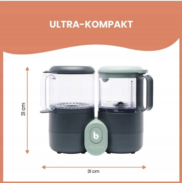 - 4 urządzenia w jednym: miksowanie, sterylizowanie, podgrzewanie butelek, rozmrażanie pokarmu dla niemowląt.