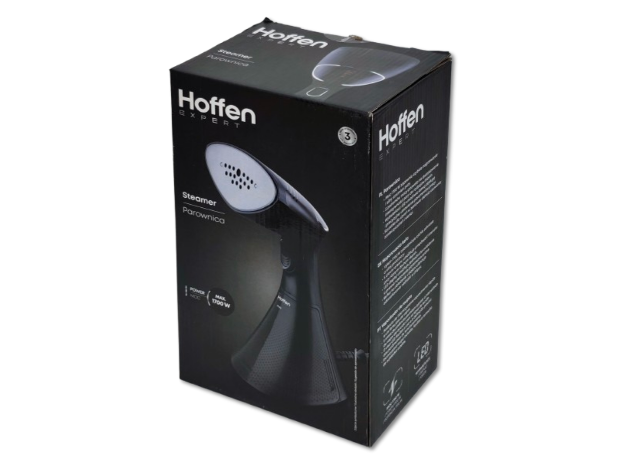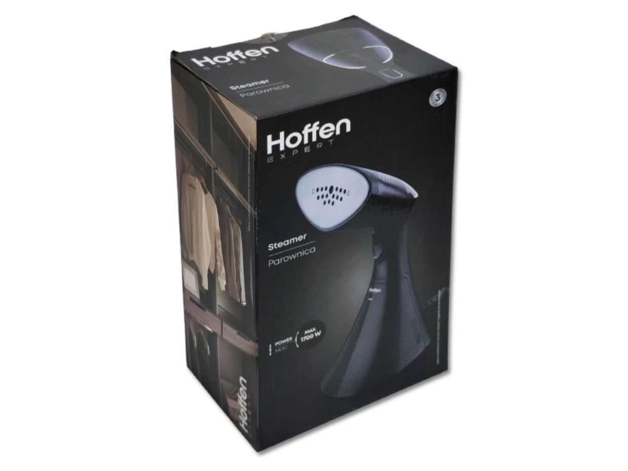 Parownica do ubrań marki Hoffem o mocy 1700W zapewniającej szybkie nagrzewanie oraz wygodne prasowanie, usuwanie fałd, kłaczków i włosów z różnych materiałów. Urządzenie posiada 5 poziomów mocy dzięki czemu można dostosować intensywność pary do rodzaju materiału. Parownica świetnie nadaje się do usuwania zagnieceń oraz odświeżania ubrań i tkanin bez użycia żelazka, nadaje się do większości materiałów, o ile są one zawieszone na wieszaku. Urządzenie posiada włącznik/wyłącznik, przycisk wyrzutu pary, dwa przyciski "+" i "-" do zmiany natężenia wyrzutu pary, 220ml zbiornik na wodę, szczotkę do ubrań oraz górnej części wyświetlacz sygnalizujący tryb pracy oraz konieczność uzupełnienia wody. Urządzenie przeznaczone jest wyłącznie do prywatnego użytku wewnątrz pomieszczeń. Gwarantem i importerem urządzenia jest znana wszystkim polska firma MPM.