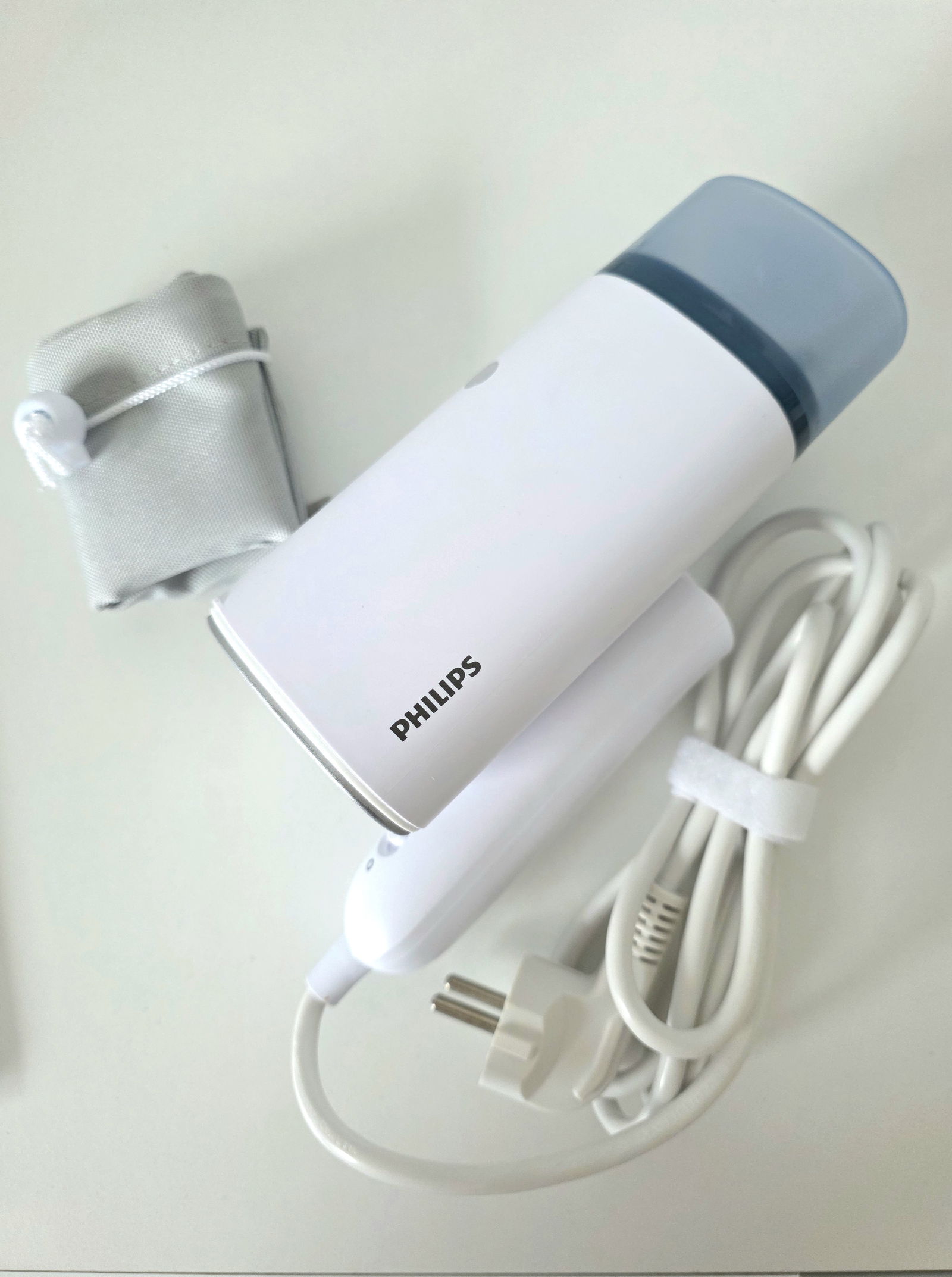 W zestawie parownica do ubrań Philips steamer seria 3000 biała i pokrowiec do przechowywania.