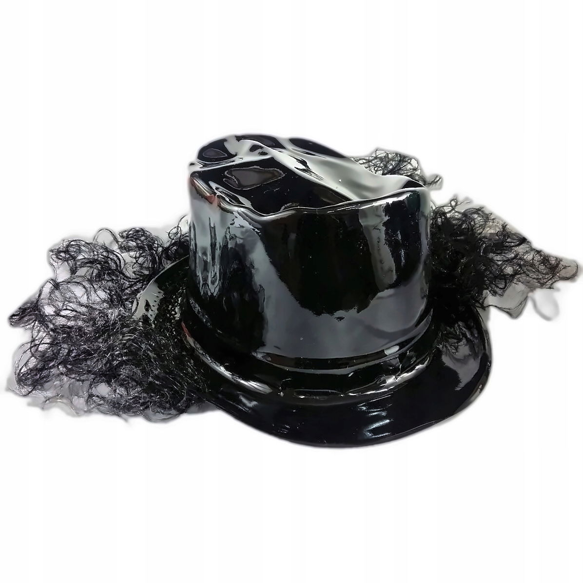 Party Kapelusz Cylinder z Włosami - 56cm Czarny Plastikowy