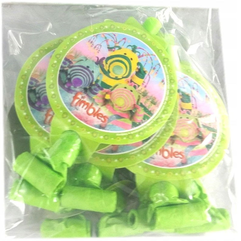 Party trąbki urodzinowe - papierowe, model Fimbles, zielone, 8 szt.