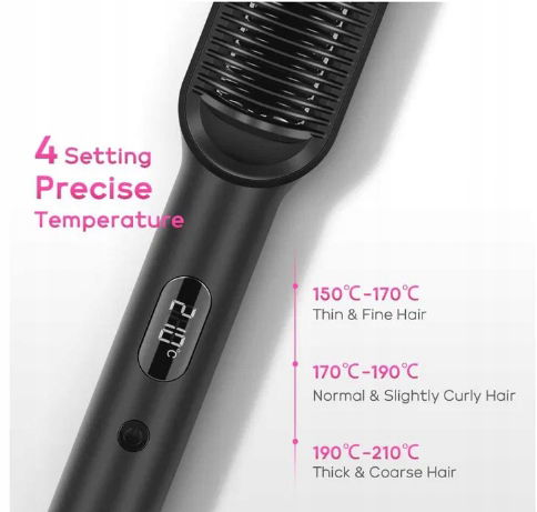 - ✴️Nadaje się do wielu rodzajów włosów – ta szczotka do prostowania zapewnia 4 regulowane temperatury (od 150 do 210), które nadają się do wielu rodzajów i struktury włosów. Szczotka wygładzająca z wyświetlaczem LED umożliwia dokładne dopasowanie temperatury do rodzaju włosów jednym kliknięciem, co sprawia, że stylizacja jest bardziej wydajna i łatwiejsza niż kiedykolwiek wcześniej. Wskazówki: jeśli masz włosy średniej długości/długie, ten produkt może być dla Ciebie.