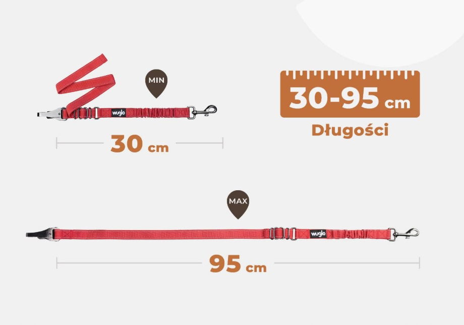 - ✴️ŁATWA REGULACJA DŁUGOŚCI (30-95 cm) - Pasy bezpieczeństwa dla psa firmy Wuglo posiadają unikalną konstrukcję, która pozwala na błyskawiczną regulację ich długości. Nasz pas do samochodu dla psa pozwoli zapewnić Twojemu pupilowi bezpieczną podróż.