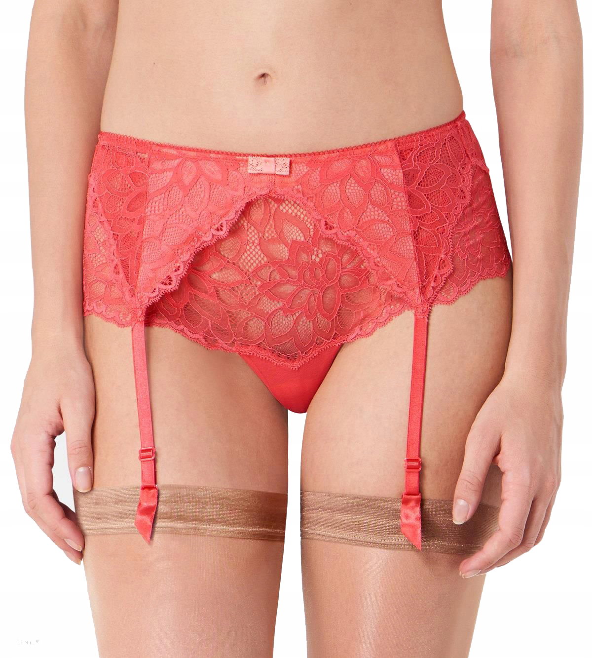 Pas do pończoch Triumph Dream Spotlight S to połączenie elegancji z odrobiną zmysłowości. Wykonany z przepięknej, transparentnej koronki podszytej tiulem, nadaje romantycznego wyglądu. Z tyłu zapinany na haftki, co gwarantuje wygodę i pewność noszenia. Kolorowa koronkowa kokardka dodaje dziewczęcego uroku.