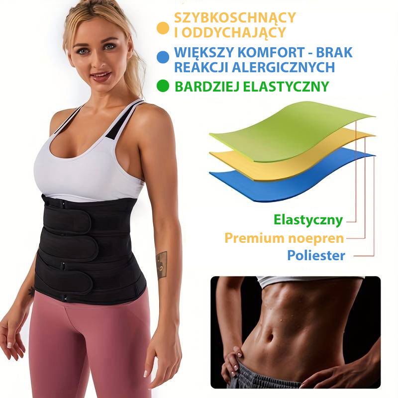Neopren zatrzymuje ciepło w okolicach brzucha, powodując intensywniejsze nagrzewanie – to tzw. efekt sauny, który wspiera modelowanie sylwetki.