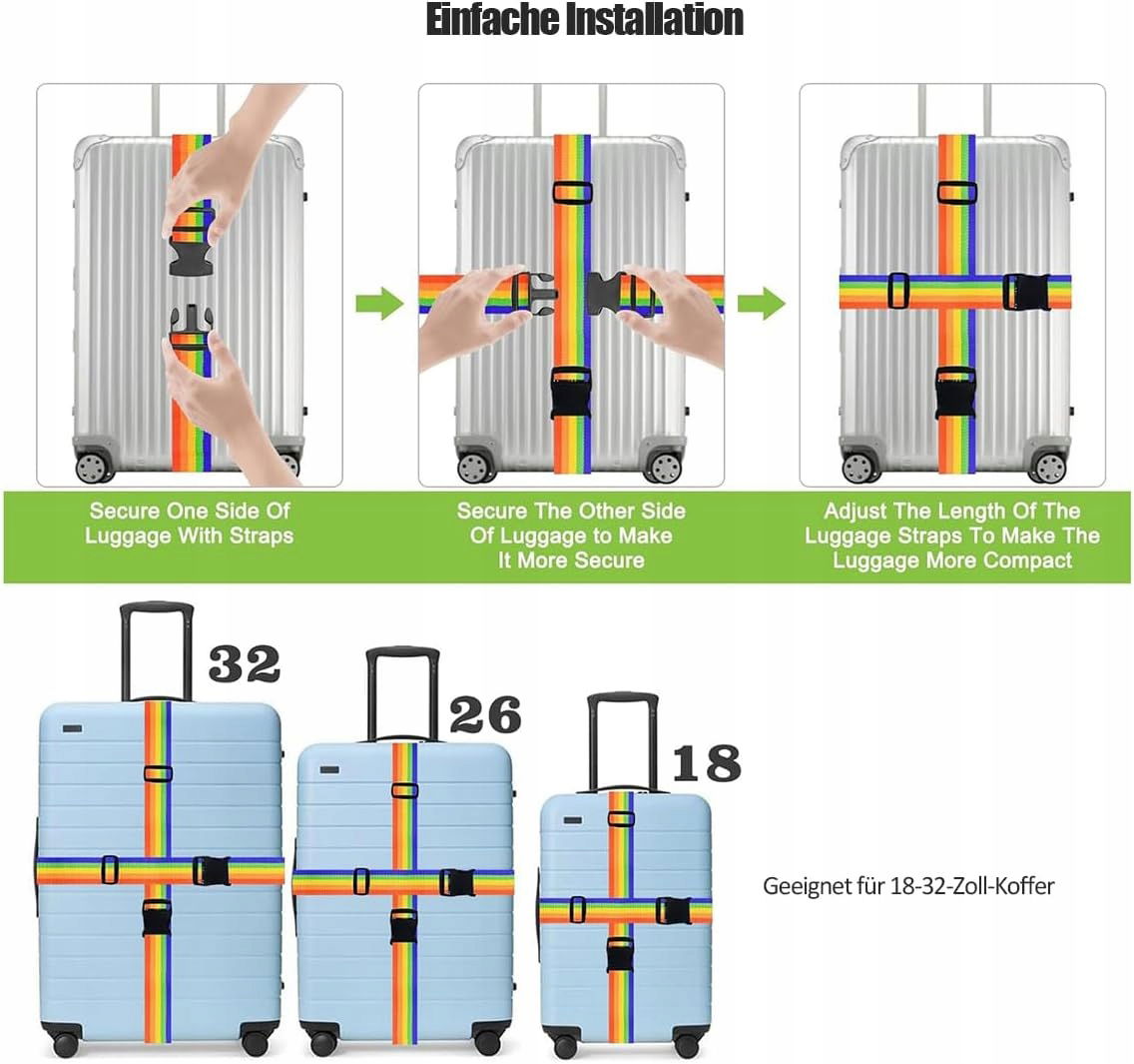Ten zestaw 4 pasków do walizki to idealny sposób, aby wyróżnić swój bagaż i uniknąć pomyłek na lotnisku. Modne, połyskujące paski z żywymi kolorami pomogą Ci szybko odnaleźć swoje rzeczy w tłumie.
