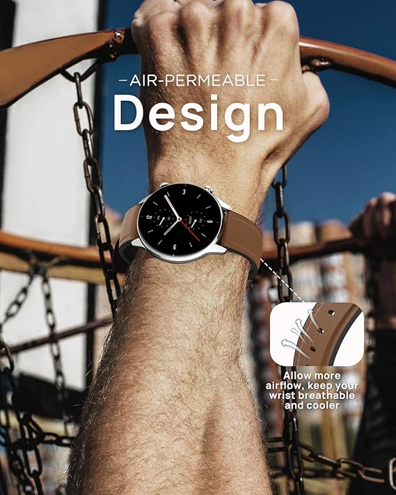 Hybryda stylu i wygody – ten pasek do Amazfit GTR (4, 3 Pro, 3, 2, 2e) oraz Stratos 2/3 to mistrzowski duet skóry i silikonu. Z zewnątrz – elegancka skóra, od wewnątrz – oddychający, odporny na pot silikon. Pasuje do Ciebie, czy biegniesz na spotkanie, czy… dosłownie biegniesz. 🏃>️