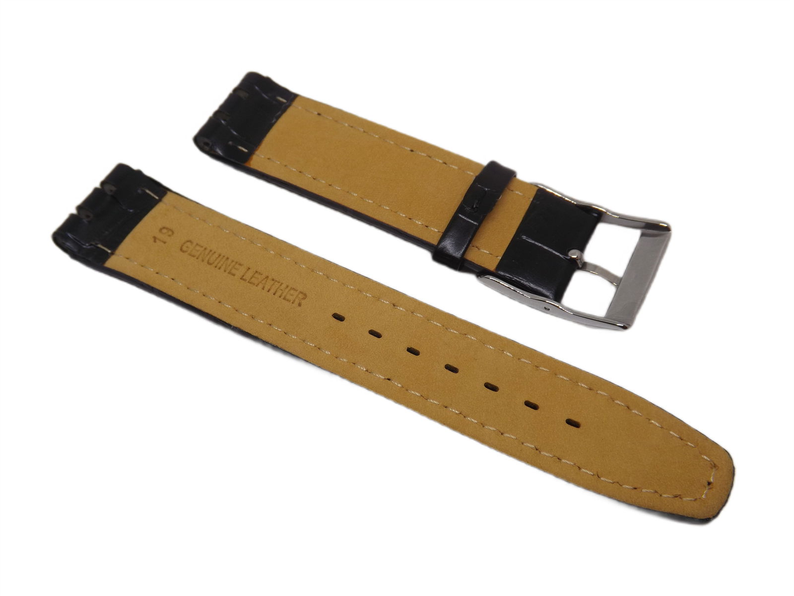 PASEK DO ZEGARKA CZARNY KROKO SWATCH 19 MM + SZTYFTY MOCUJĄCE