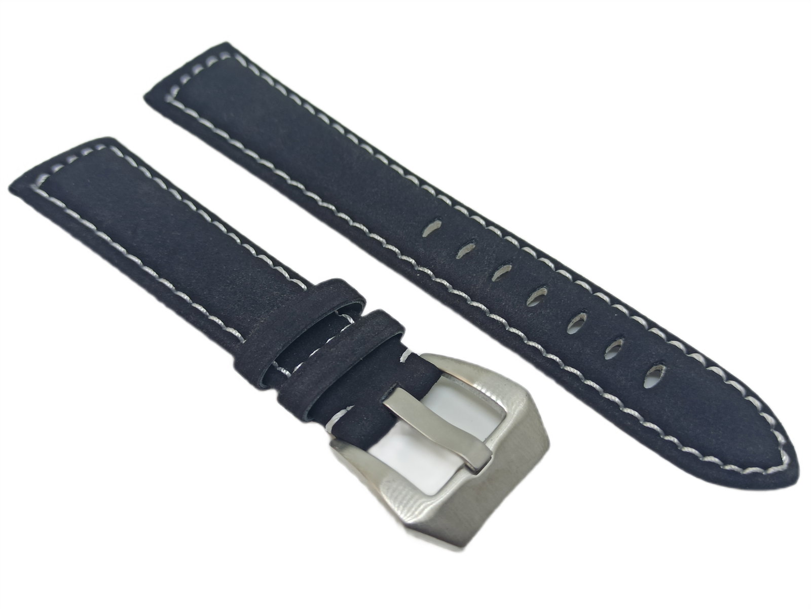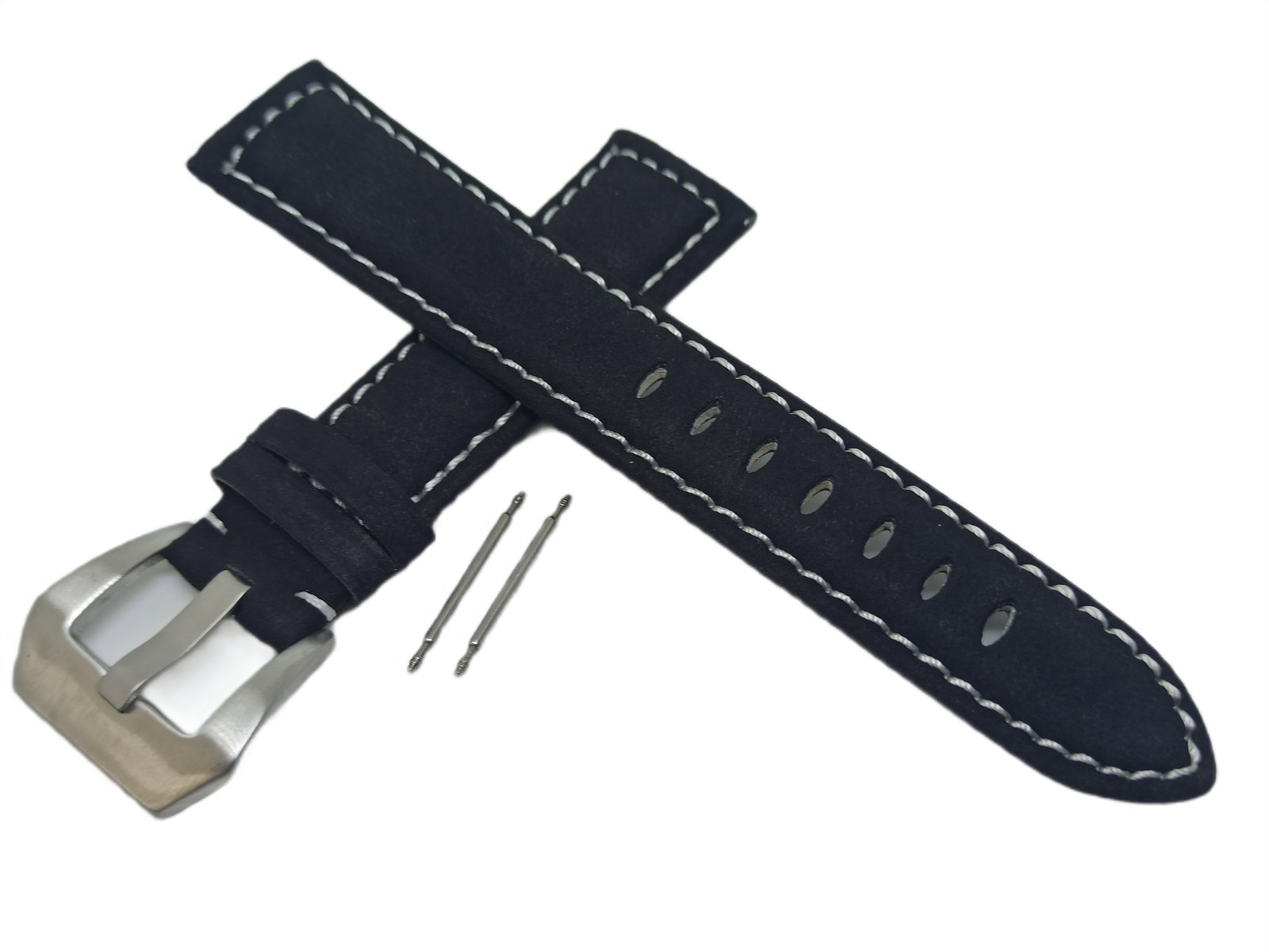 PASEK DO ZEGARKA CZARNY MATOWY 24 MM SREBRNA KLAMERKA + TELESKOPY