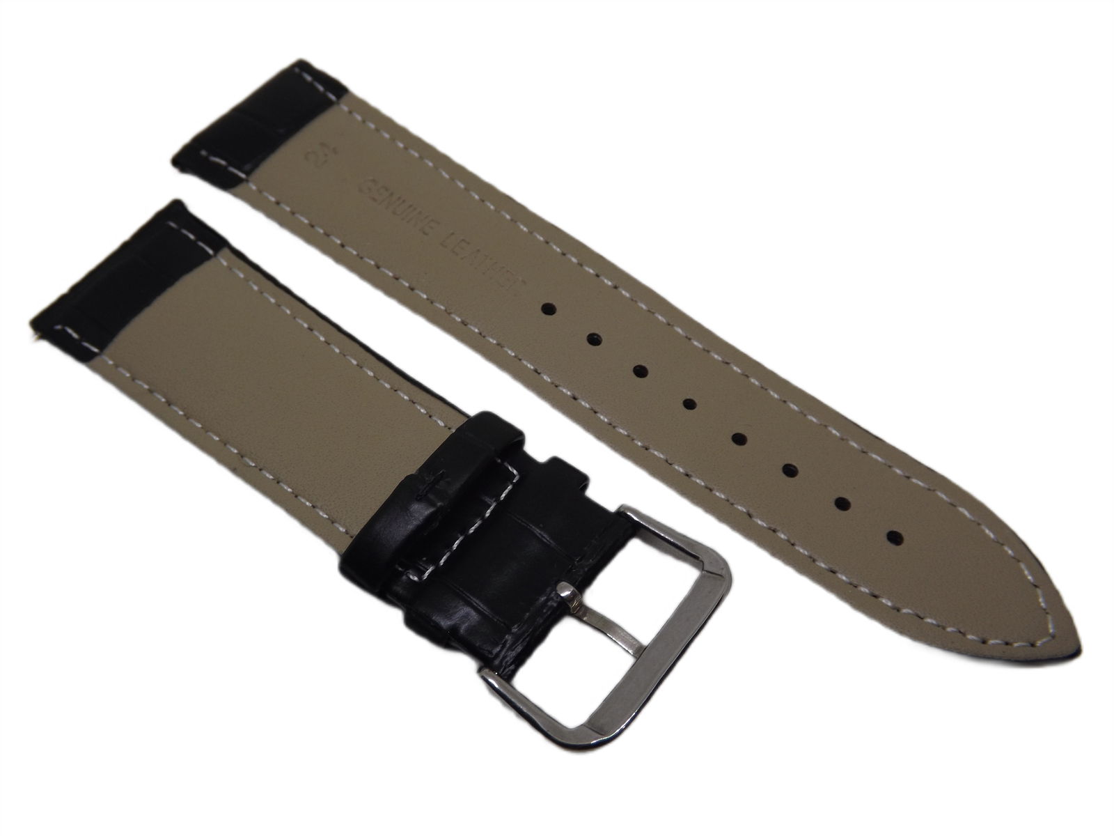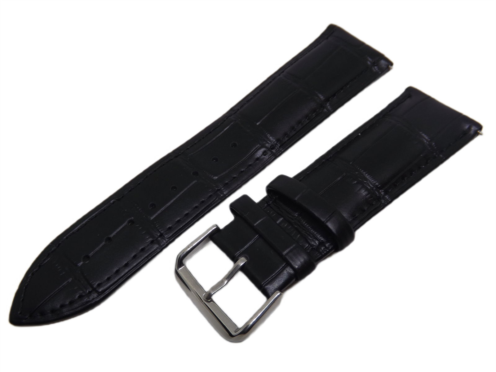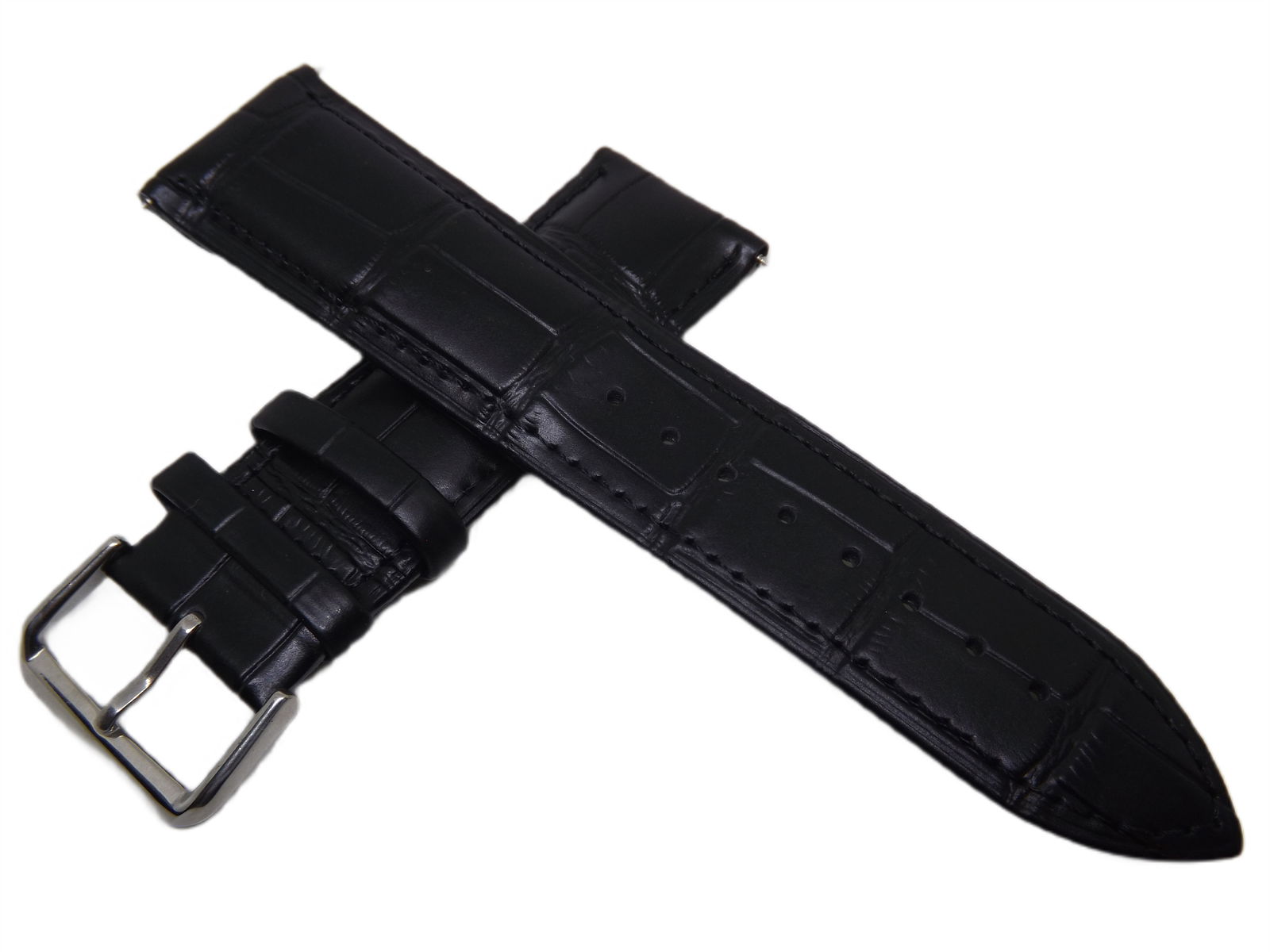 PASEK DO ZEGARKA CZARNY WZÓR KROKO 24 MM SREBRNA KLAMERKA + TELESKOPY