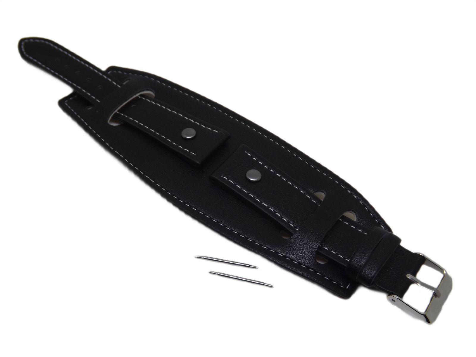 Jedyna sztuka PASEK DO ZEGARKA EKO SKÓRA CZARNY Z PODKŁADKĄ 20 MM SREBRNA KLAMERKA