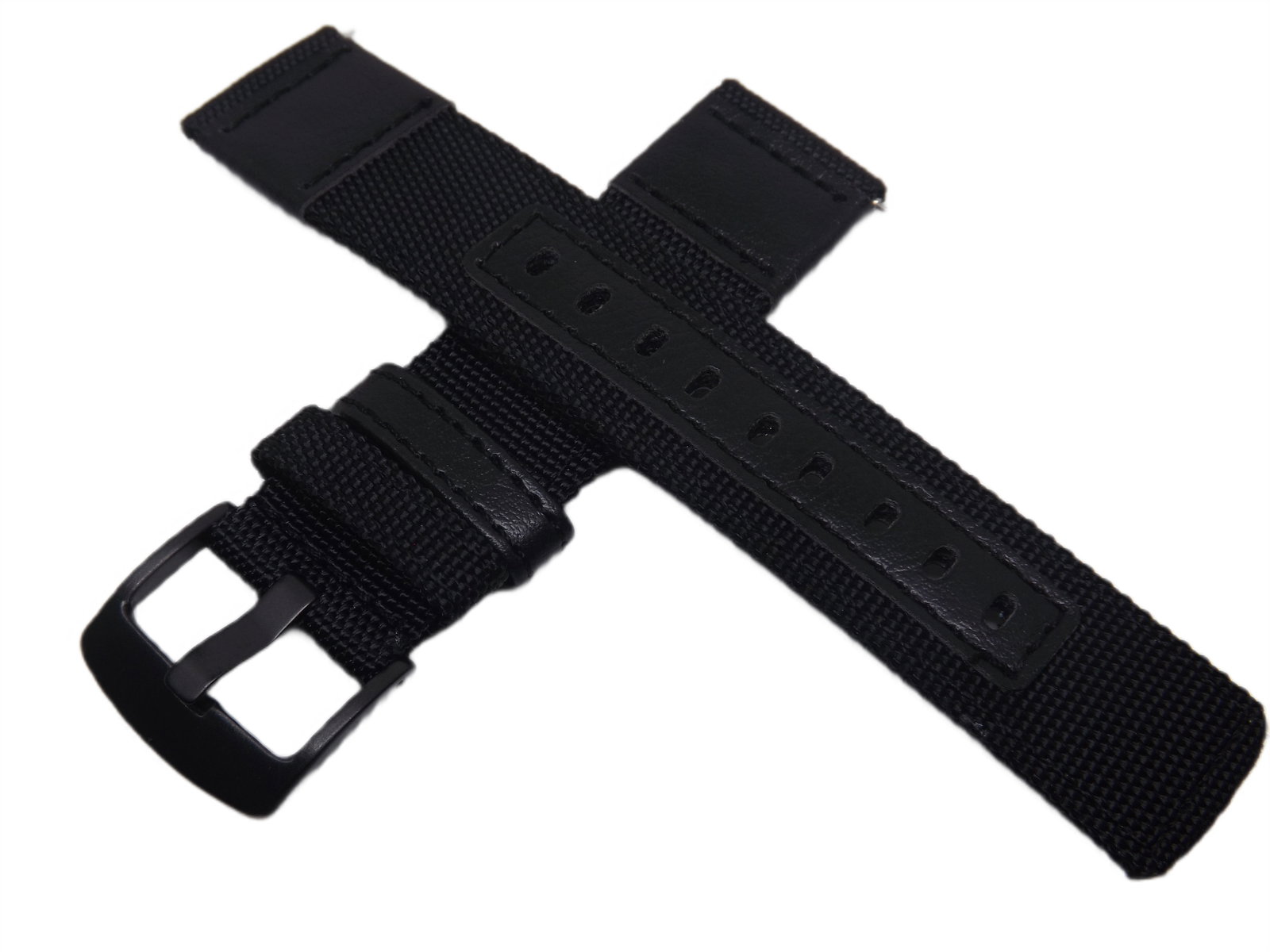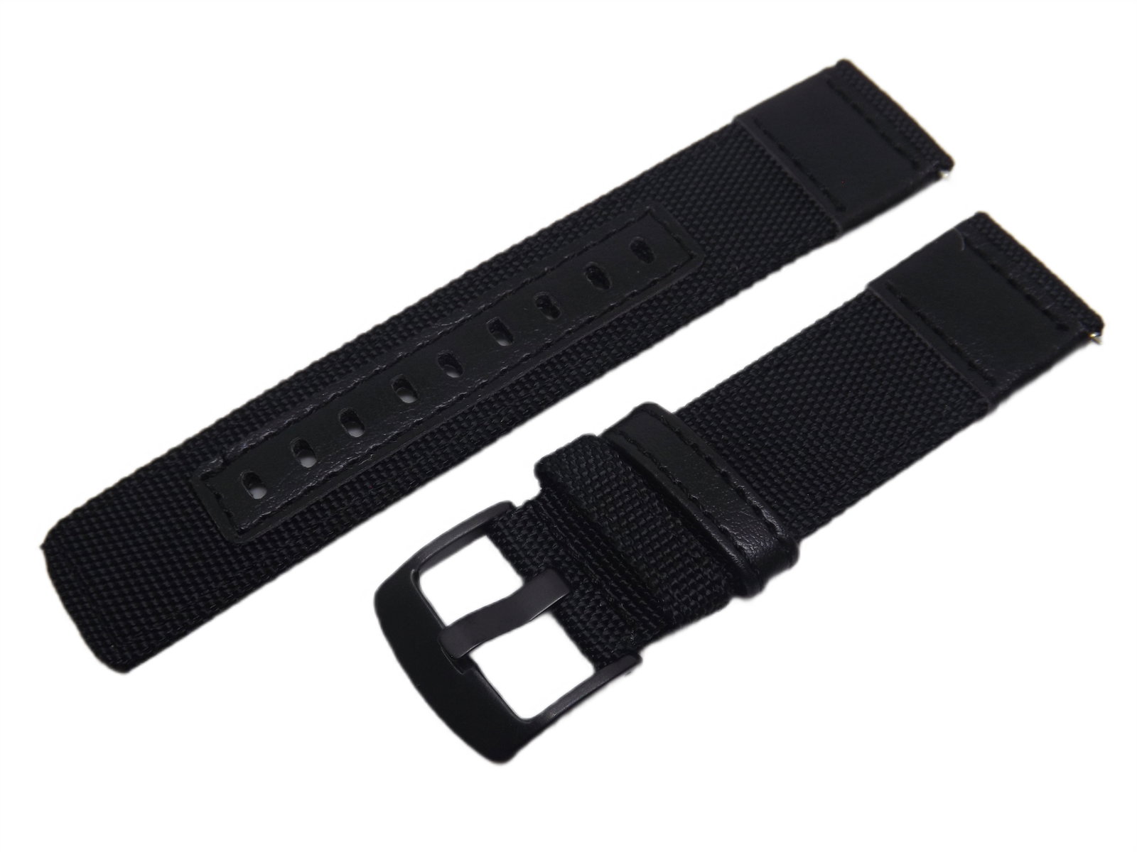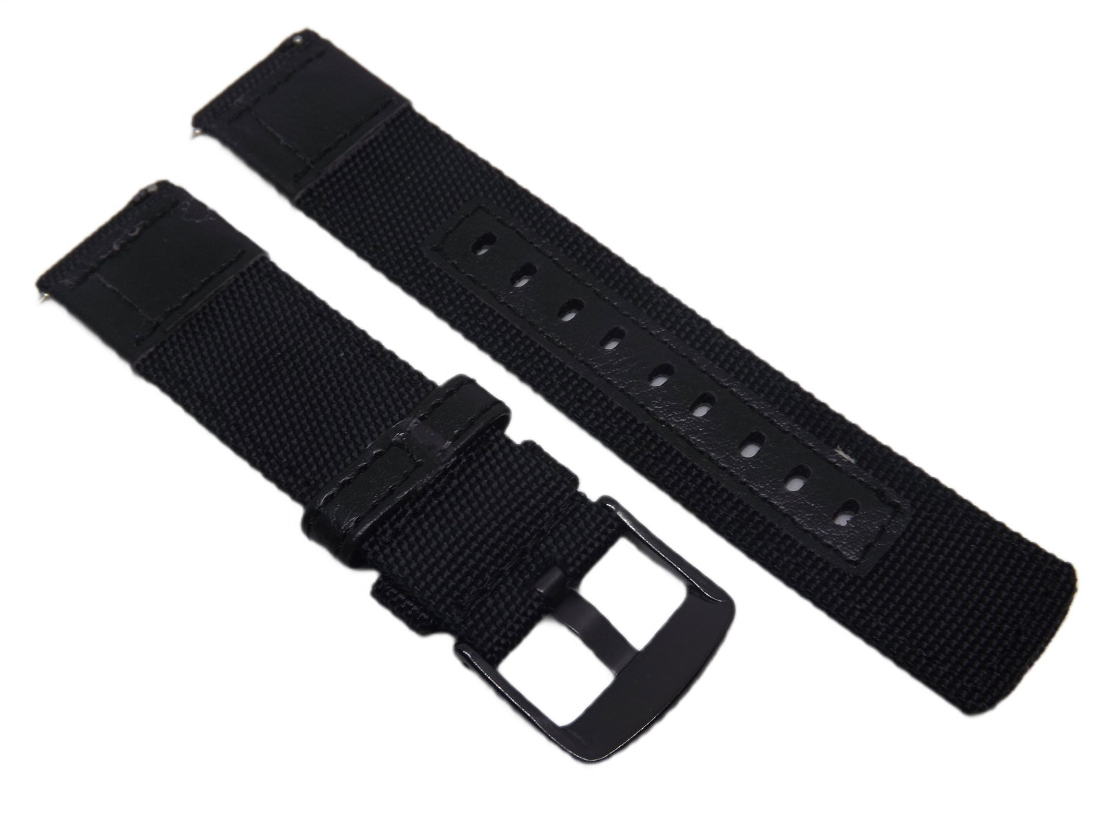 PASEK DO ZEGARKA PARCIANY CZARNY 22 MM CZARNA KLAMERKA + TELESKOPY