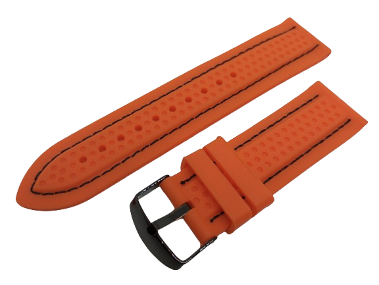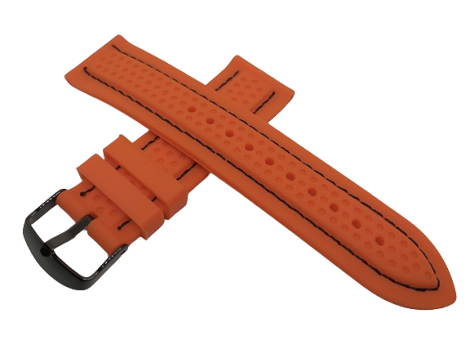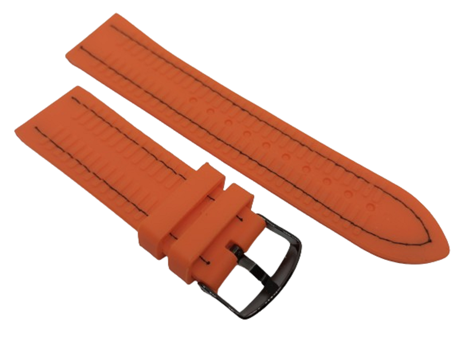 PASEK DO ZEGARKA SILIKONOWY POMARAŃCZOWY 24 MM CZARNA NITKA CZARNA KLAMERKA
