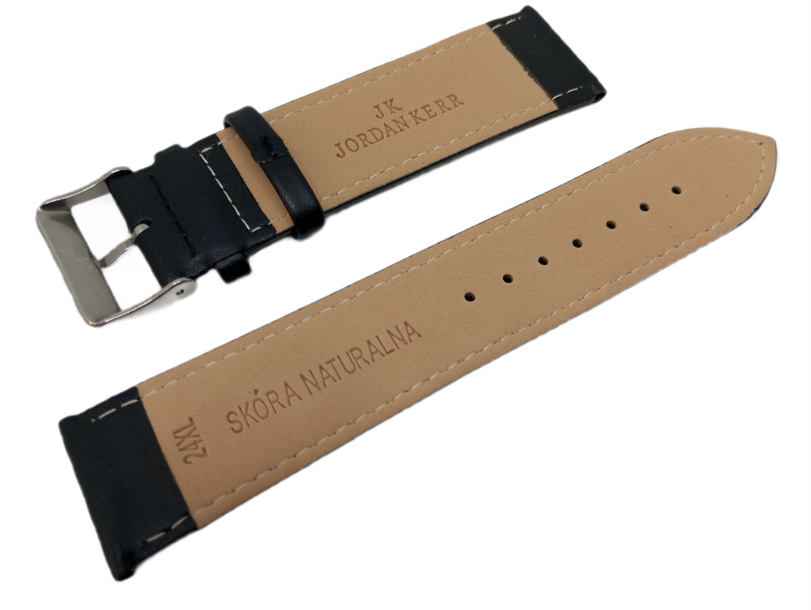 PASEK JORDAN KERR DO ZEGARKA SKÓRA CZARNY XL 24 MM SREBRNA KLAMERKA