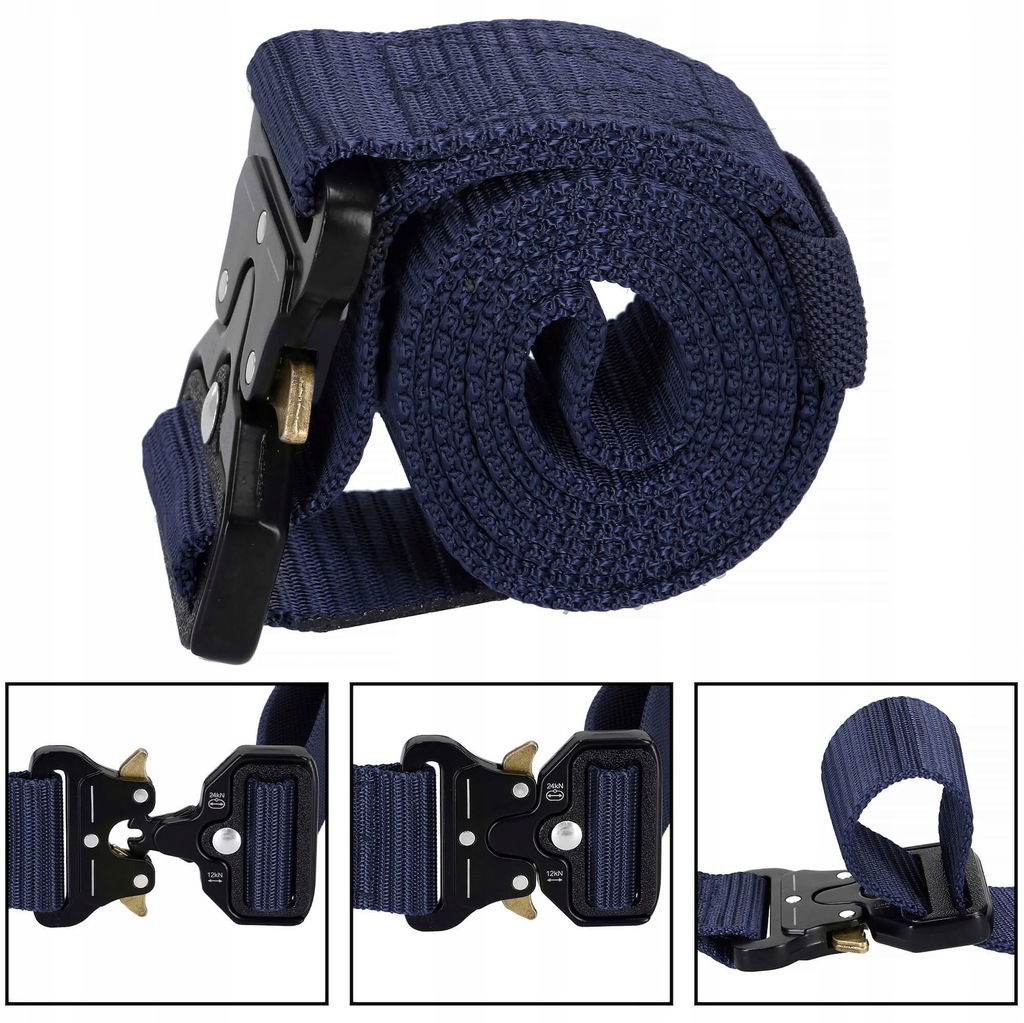 PASEK PARCIANY CIEMNY NIEBIESKI GRANAT WOJSKOWY MUNDUROWY 125/3,5 cm MOCNY