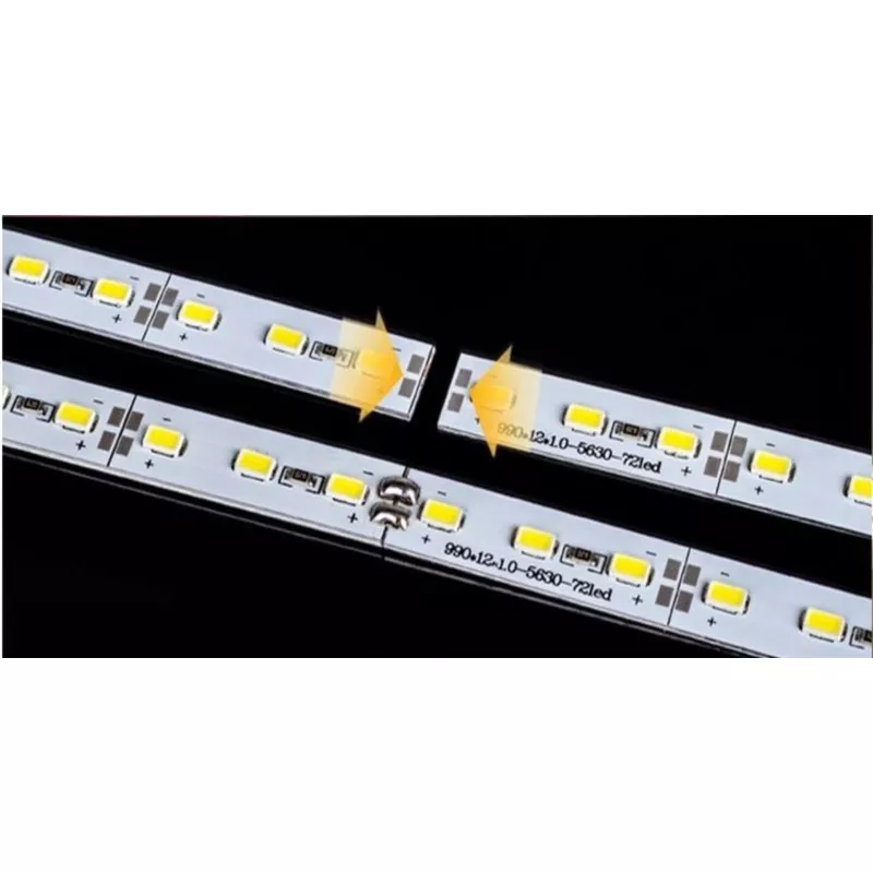 Aluminiowa listwa, taśma o długości 990mm, wykonana w technologii led na diodach 5730 ilość diod 72szt. Idealna do podświetleń mebli, blatów kuchennych, miejsc pracy, posiada wiele innych zastosowań. Dostępne barwy światła: ciepła i zimna. Pasek można ciąć co 50mm i łączyć według potrzeby. Maksymalnie można ze sobą połączy do sześciu pasków w szereg.